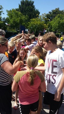 Gistermiddag hebben we samen met alle kinderen van de school de kinderen van groep 8 uitgezwaaid. Alle kinderen maakten een poortje en riepen “We zwaaien met z’n allen naar groep 8!” De kinderen van groep 8 vonden dit geweldig! Aan het einde van het poortje kregen de kinderen nog een lekkere zuurstok!
