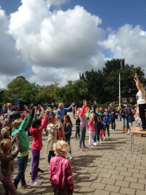 Maandagmiddag zijn we begonnen met dans op het plein. De zon kwam precies op het moment dat we wilden beginnen tussen de regenwolken door. We hebben gedanst op ”Bewegen is gezond”, ”Tante Rita” en ”Kippie kippie tok tok” om het schooljaar vrolijk en dansend te beginnen.