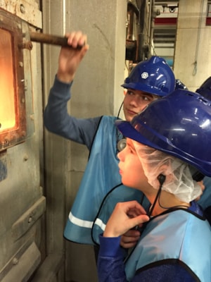 We hebben alle verschillende onderdelen van het proces in de fabriek kunnen bekijken. Het meest indrukwekkend was de plek waar een kraanmachinist een grijper van 10.000 kg in het vuil liet zakken en zo 8-10 ton kg afval oppakte en in de trechter van de oven stortte. Ook was het erg leuk om via een klepje in de verbrandingsovens te kunnen kijken.