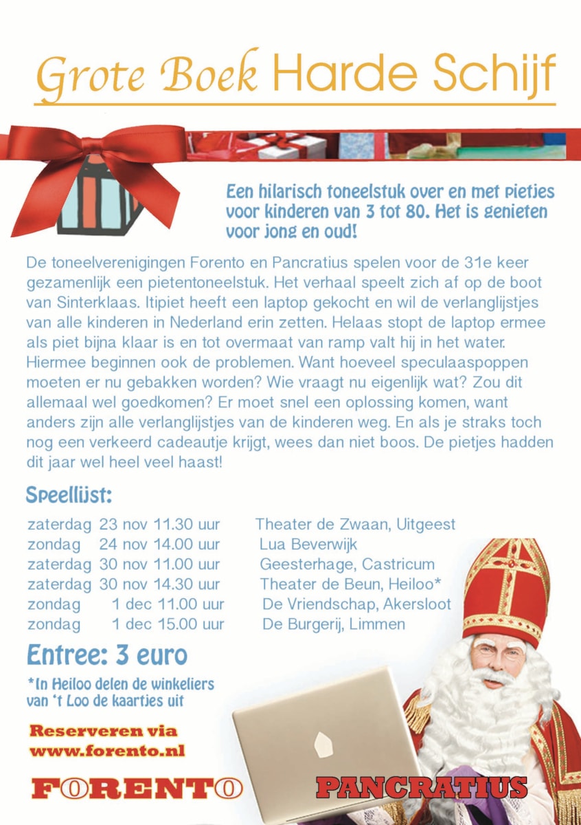 Dit weekend wordt er op een aantal plaatsen door oa toneel vereniging Pancratius een Pietenvoorstelling gehouden.