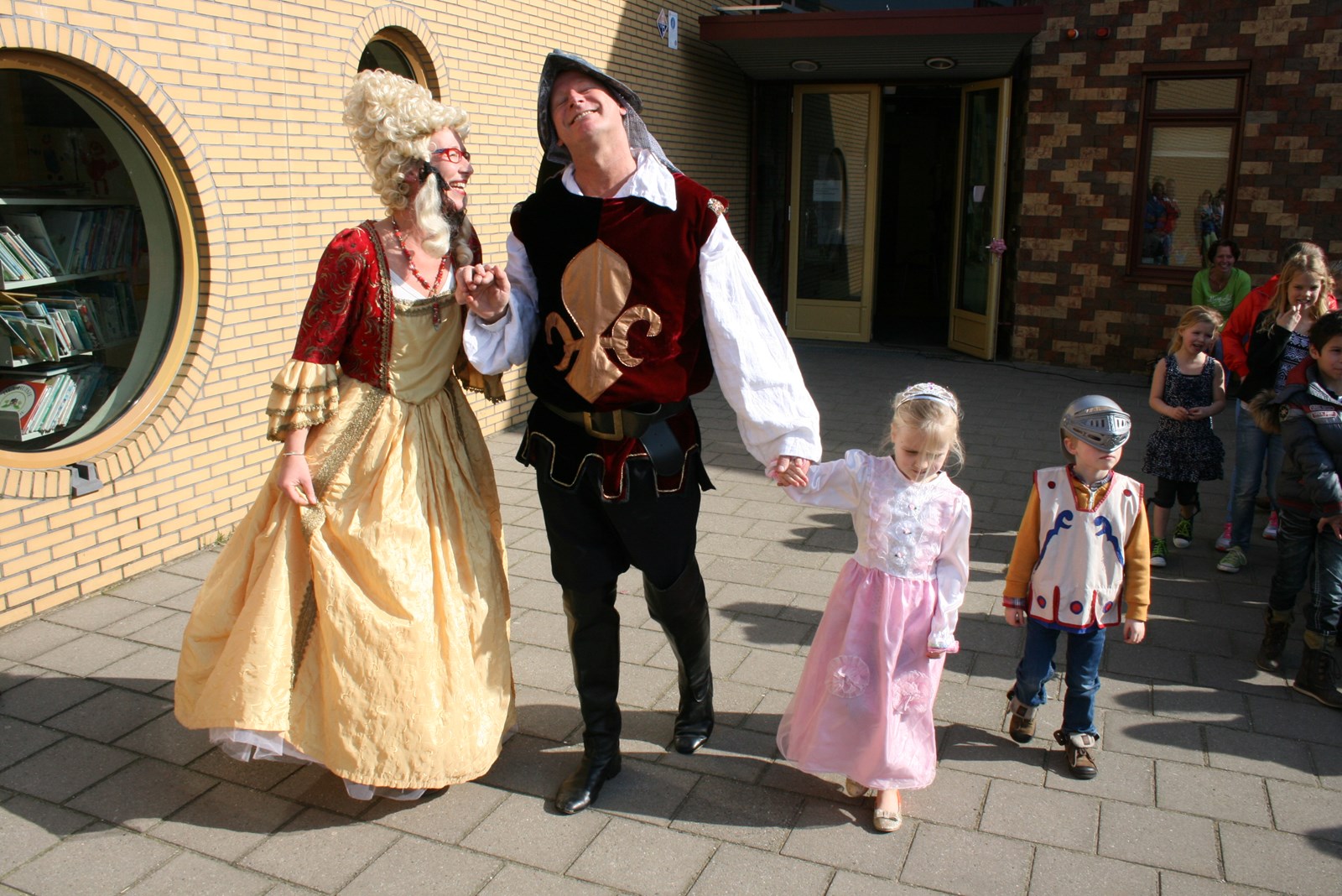 Maandagmiddag werden de projectweken geopend. Uit het raam riepen jonkvrouwen Bonna en Helena dat zij gered wilden worden. Ridder Jort en Hugo wilden dat wel. Jort zat op zijn stoere ros (juf Esther en Sanny). Ridder Hugo had echter hoogtevrees en probeerde het daarna nog met een valscherm. Dát durfden de jonkvrouwen weer niet. Uiteindelijk gooide jonkvrouw Helena de sleutels maar naar beneden. Daarna werd de banner met het logo en die van de projectweken omhoog gehesen.