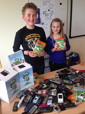 Er zijn heel wat mobieltjes opgehaald. Raymen en Sunny zijn erg blij met de opbrengst. Natuurlijk kunt u mobieltjes bij Raymen en Sunny in blijven leveren.