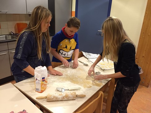 Helemaal zelfstandig gaan ze dan aan de slag. De eerste groep van groep 8A wilde kerstkoekjes maken. Kyle, Richelle en Isa bleven keurig binnen budget. Ze hadden een mooi koekjesdeeg gemaakt en de eerste lading koekjes ging de oven in. Toen de koekjes uit de oven kwamen waren ze wat donkerder dan de bedoeling was. Niet verbrand maar ook niet helemaal mooi (Richelle vond ze zo eigenlijk het lekkerst!). De kinderen ontdekten dat de koekjes wat dikker moesten zijn. De volgende 2 ladingen koekjes kwamen dus super mooi uit de oven!