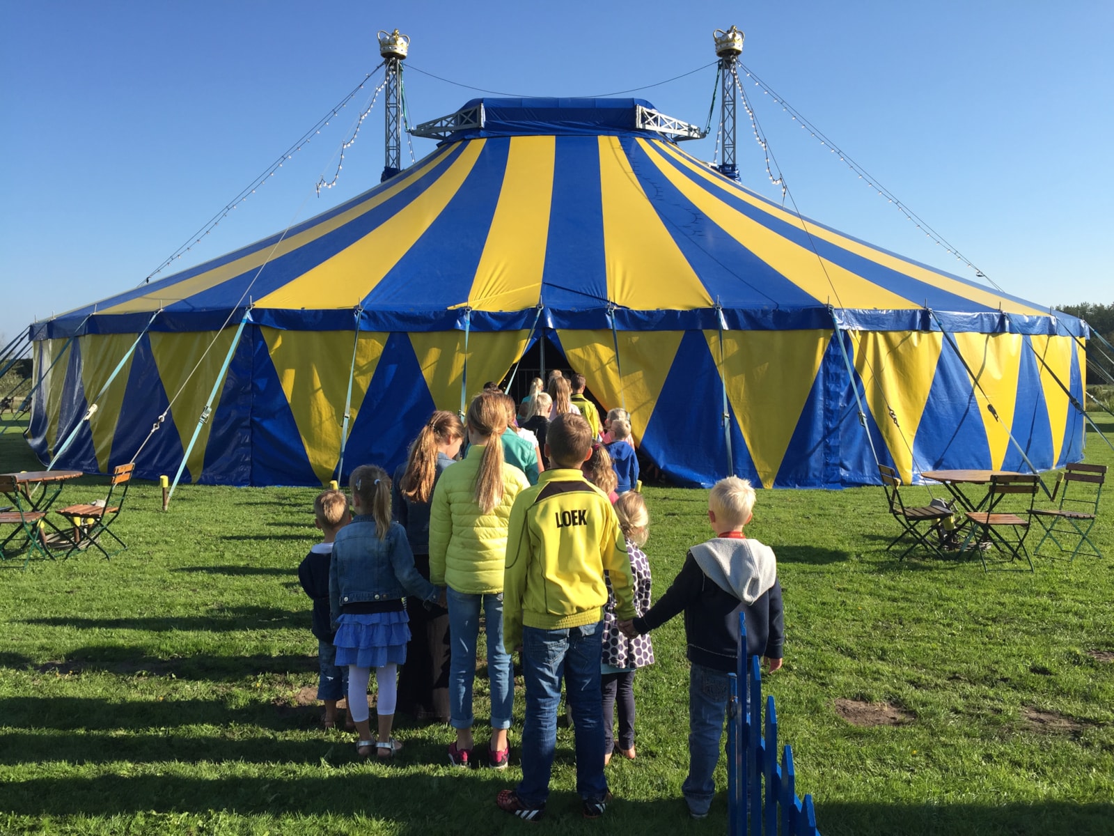 Vrijdagochtend waren alle klassen op visite bij Circus Sijm. We waren verdeeld in 3 groepen. Alex Sijm, de directeur van het circus heeft alle groepen rondgeleid.