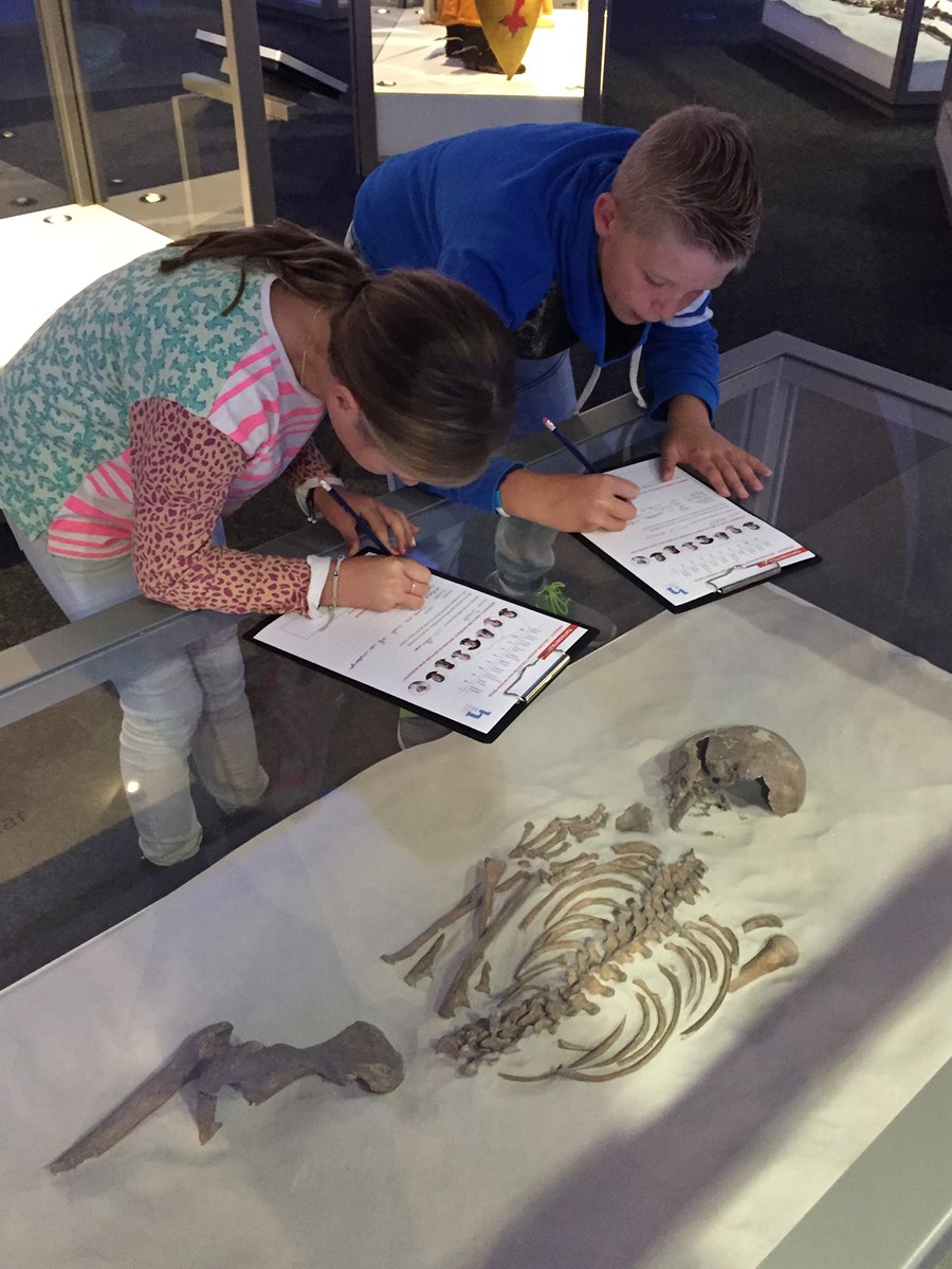 Tentoonstelling: in de tentoonstelling waren er reconstructies gemaakt, van de skeletten die zijn opgegraven. Bijvoorbeeld een 16 jarig meisje. Je kon daar filmpjes bekijken over die opgegraven mensen van vroeger. Er stonden daar ook nog andere spullen.