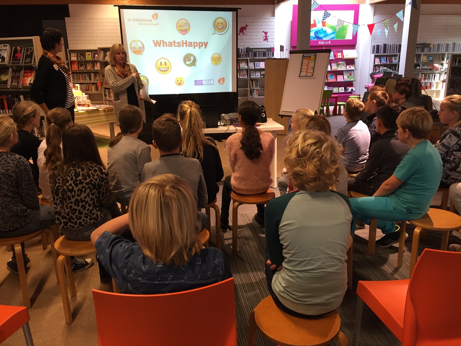 Donderdag kregen beide groepen 8 een gastles van Karin en Irma in de bibliotheek van Akersloot. De les ging over het gebruik van chatprogramma’s en dan op de leuke en goede manier.