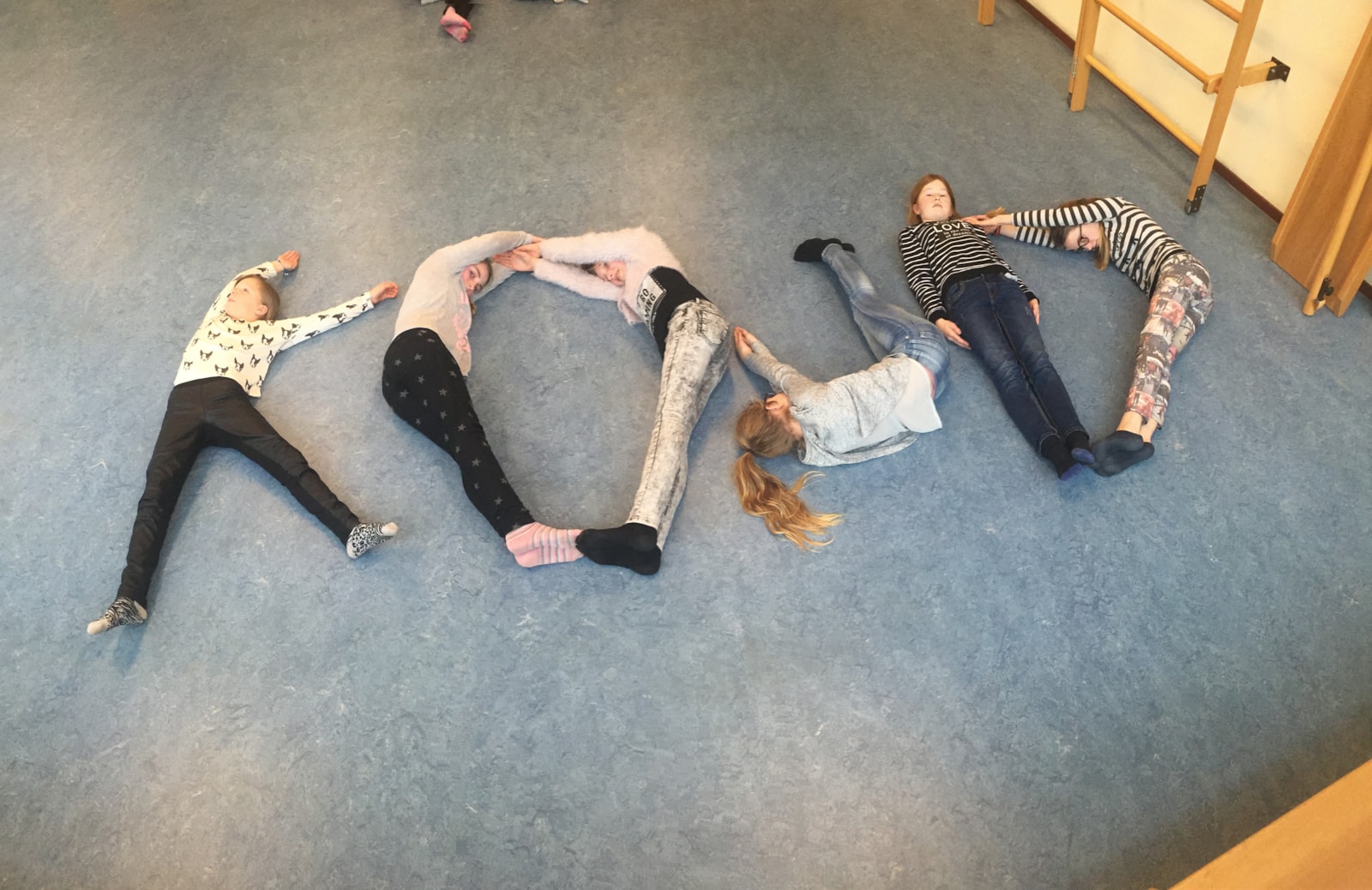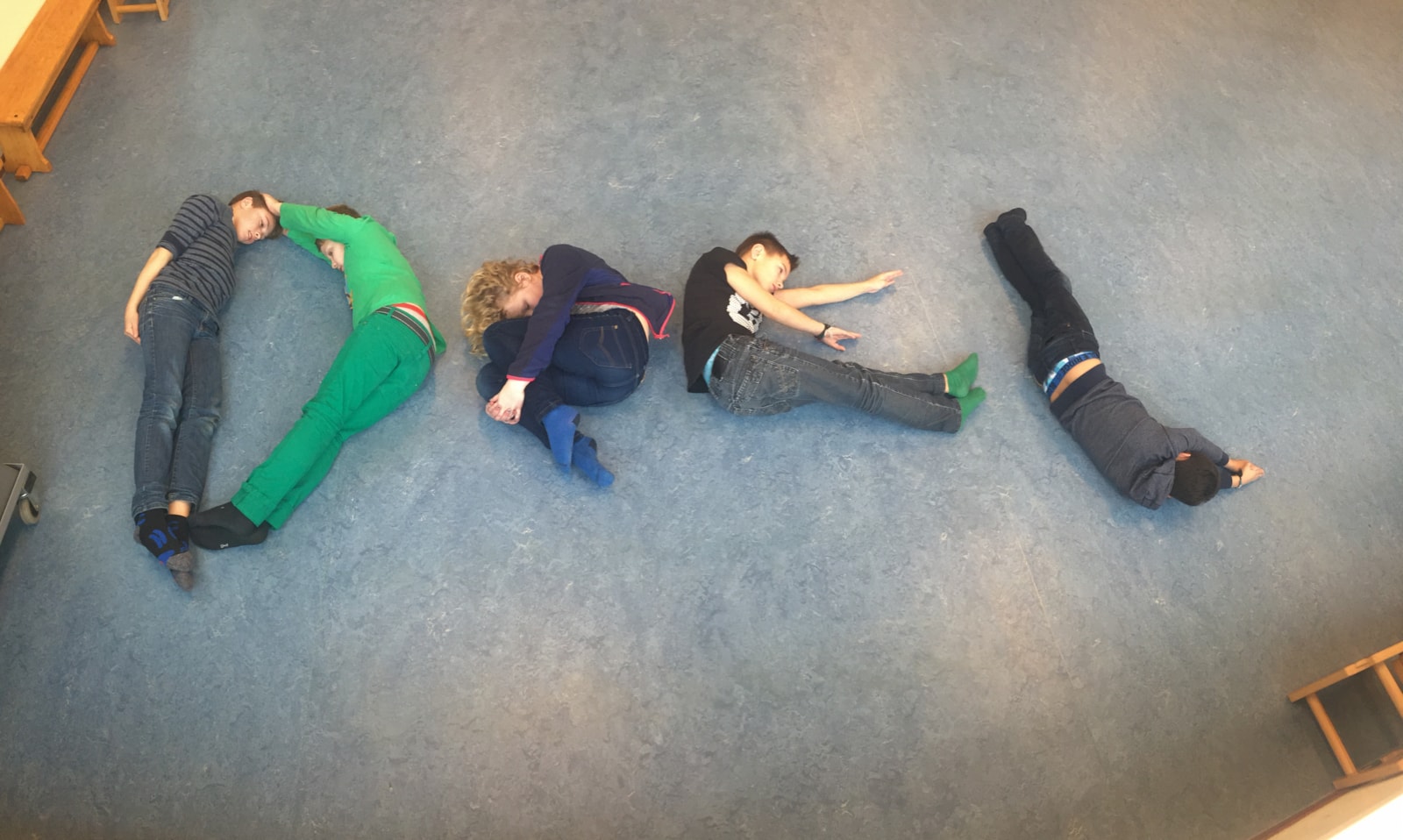 Deze week hebben we woorden gemaakt met ons lijf. In het begin was het nog niet gemakkelijk om te bedenken hoe je sommige letters kon maken. Voor sommige letters waren meerdere kinderen nodig. Na even oefenen lukte het goed en waren de woorden leesbaar. Ziet u wat wij schrijven?