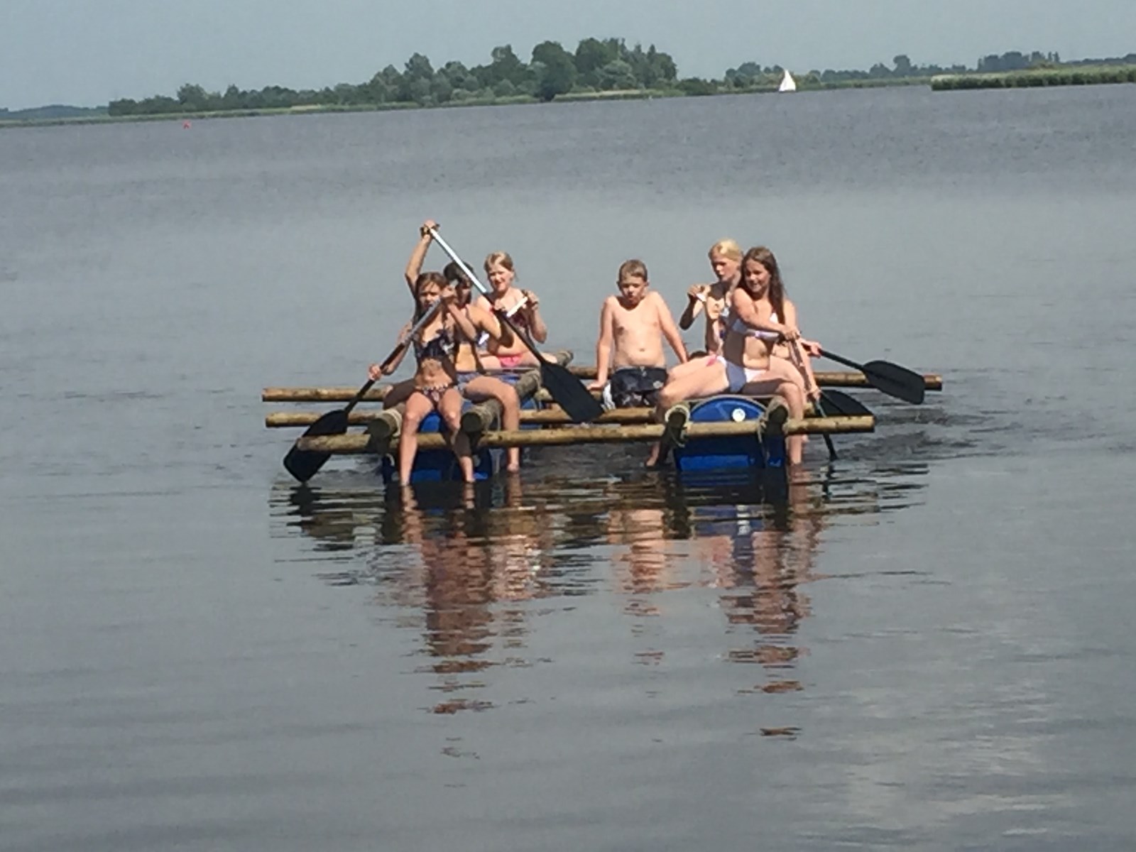 We speelden nog een onderdeel van Levend Risk en vertrokken daarna op de fiets naar het Uitgeesterstrandje. Hier hebben de kinderen onder leiding van ODI-sport vlotten gebouwd. Het zonnetje brak weer door en het was opnieuw genieten.