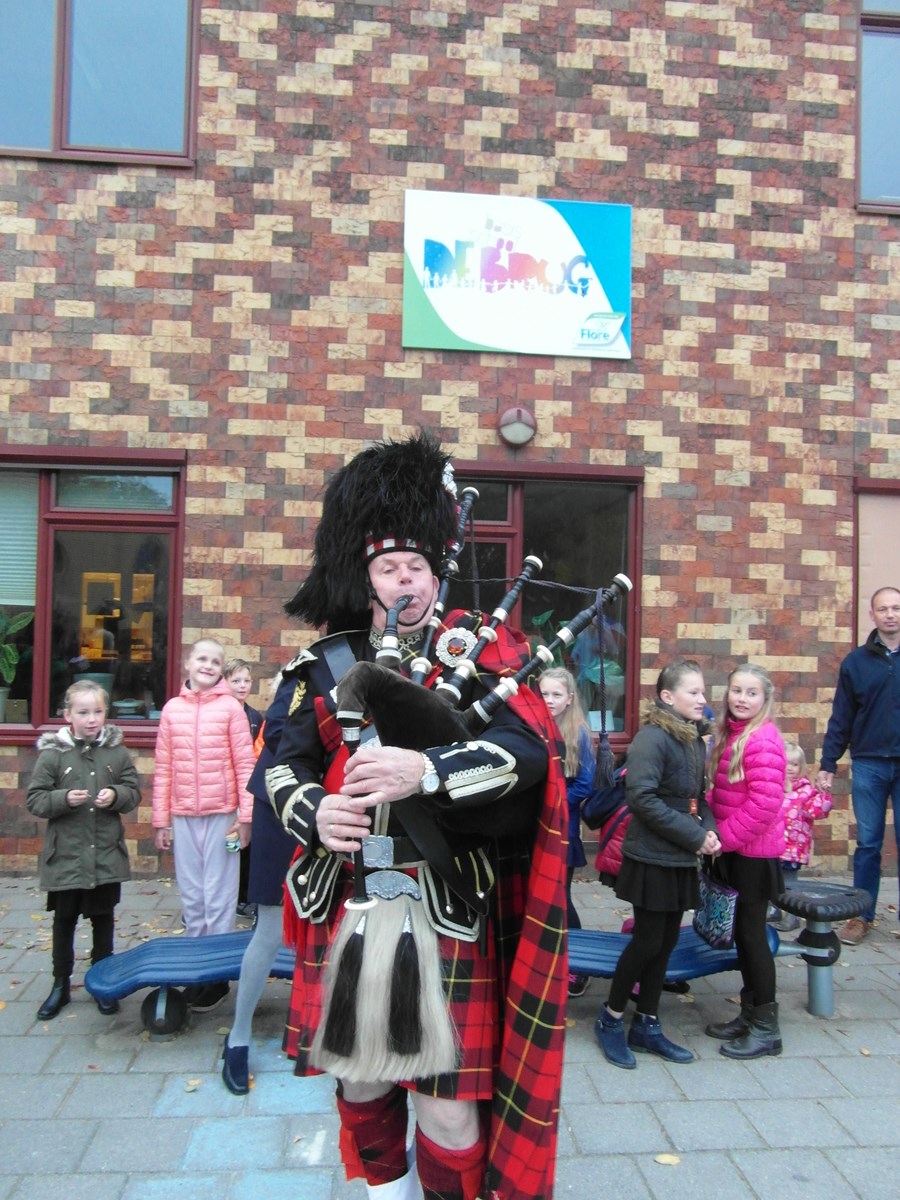 De school stond in het teken van Great Britain, vanwege onze nieuwe Engelse methode “Groove me”. We gaan vanaf de kleuters – spelenderwijs- Engels geven. De feestelijke opening werd verzorgd door Steve the Bagpipe Player, een échte doedelzakspeler. Alle kinderen mochten verkleed op school komen en werden in de klassen opgehaald door de groepjes. Groep 8 kinderen zaten verdeeld door de school en hadden voor alle kinderen Engelse spelletjes bedacht, zoals Crocket, Pictionary, Monkey Town, Engelse woordspelletjes, Mr. Bean enz.
