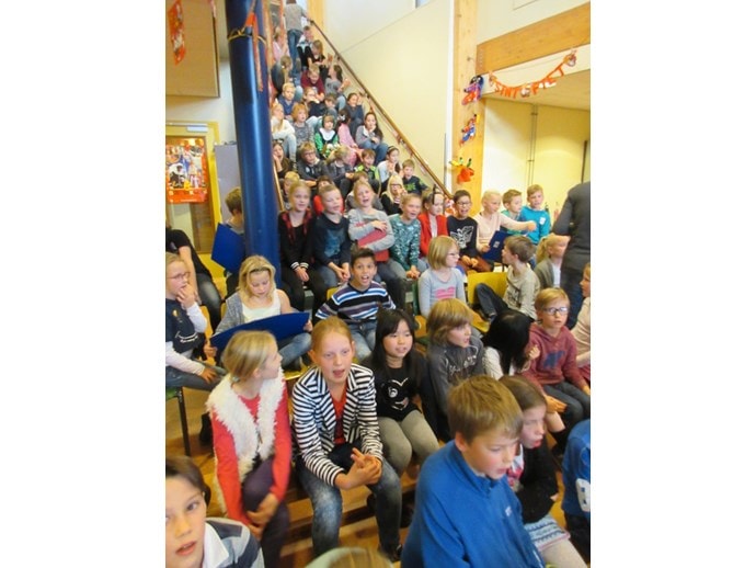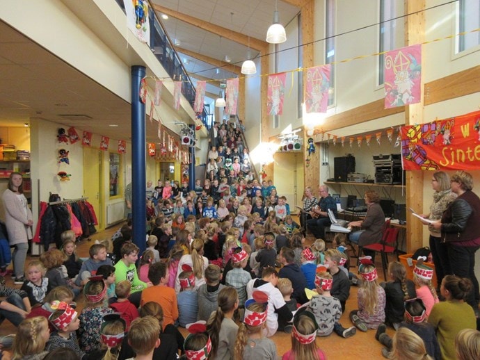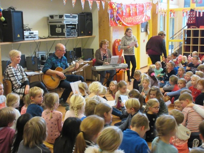 Afgelopen maandag was het weer erg gezellig in school. We zijn bij elkaar gaan zitten in de hal om de Sinterklaasliedjes te oefenen onder begeleiding van juf Margot op het keyboard en meester Wouter op de gitaar.