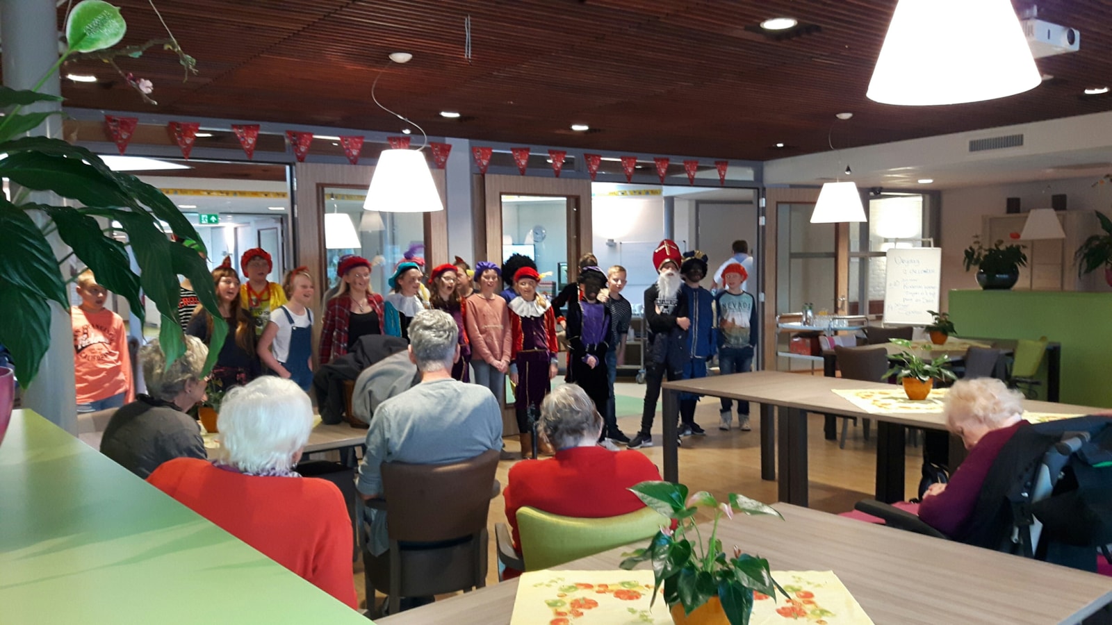 De kinderen van groep 8 hebben Sinterklaasliedjes gezongen voor de mensen in Strammerzoom. Natuurlijk moesten dit wel ’ouderwetse’ Sinterklaasliedjes zijn, dus die hadden we in de klas flink geoefend. Het was een zeer geslaagd optreden. De bewoners van Strammerzoom, de medewerkers, de juf en de kinderen hebben genoten!