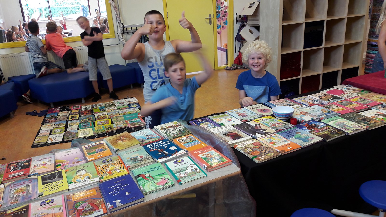 Groep 5 had afgelopen woensdag een boekenmarkt georganiseerd. Alle boeken die we niet meer gebruiken werden voor een zacht prijsje verkocht.