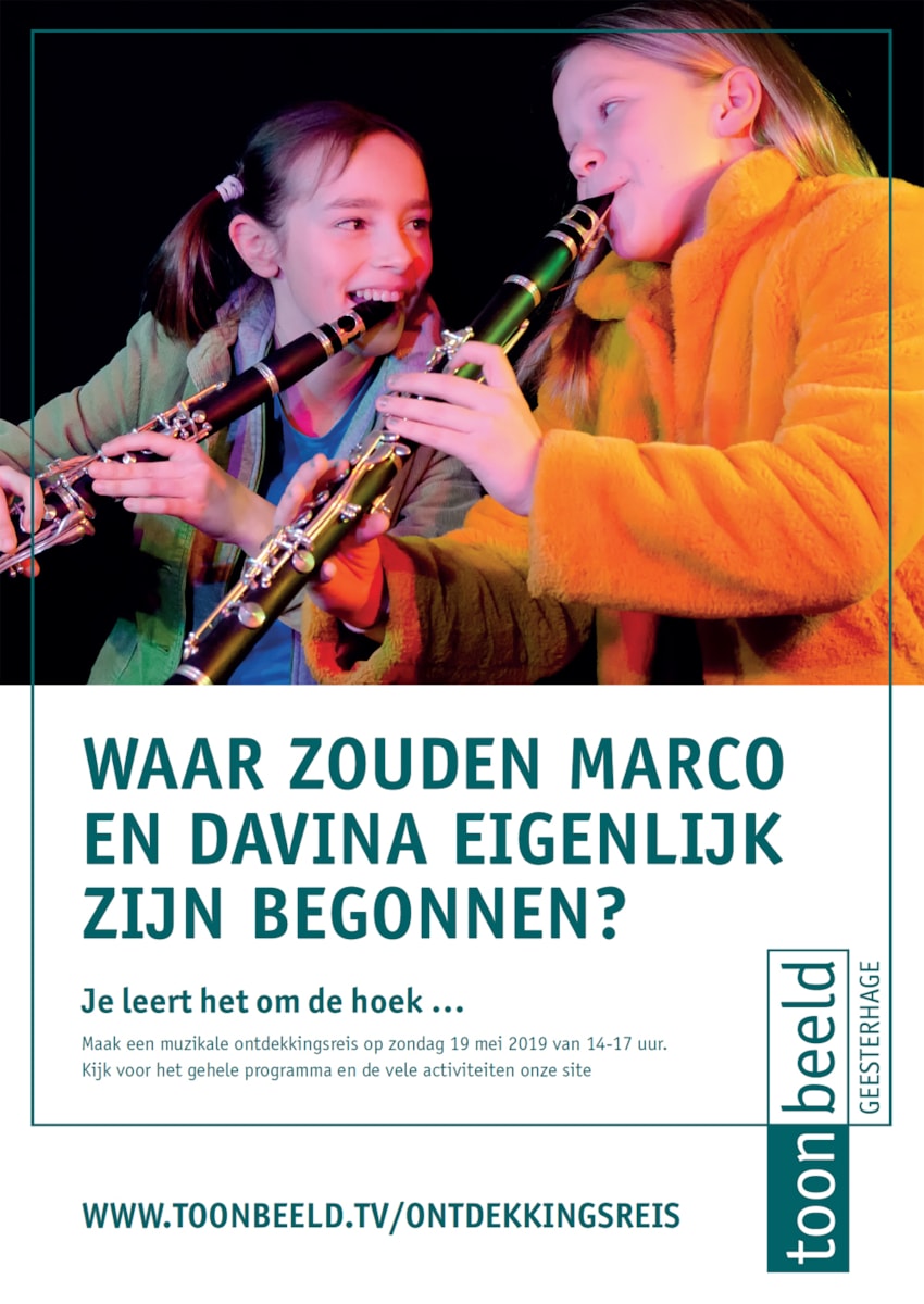 De bevlogen en kundige docenten en hun leerlingen nemen bezoekers mee op een muzikale ontdekkingsreis. Tussen 14 en 17 uur is er van alles te doen, te beluisteren en te beleven in Geesterhage in Castricum. Men kan verschillende instrumenten ontdekken, luisteren naar tal van optredens en kennismaken met Toonbeeld Geesterhage zelf.