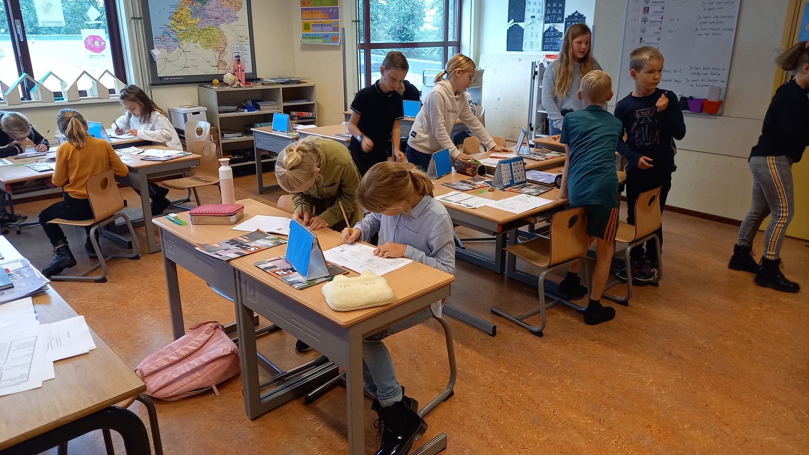 Wat hebben we toch een heerlijke groep. Afgelopen dinsdag werd er hard gewerkt: de woorden van het dictee hingen verspreid door de klas, sommige begonnen met hun taalopdracht. We zijn met het thema ’pronkstukken gestart en zullen het hier de komende weken over gaan hebben. Na taal en spelling ging iedereen verder met zijn of haar weektaak waarbij er goed samen werd gewerkt. Voor jullie zo een inkijkje in ons werkmoment.