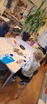 De knutselopdracht van deze week was een paraplu; de kinderen scheuren en plakken of plakken met de plakkertjes een gezellige paraplu.