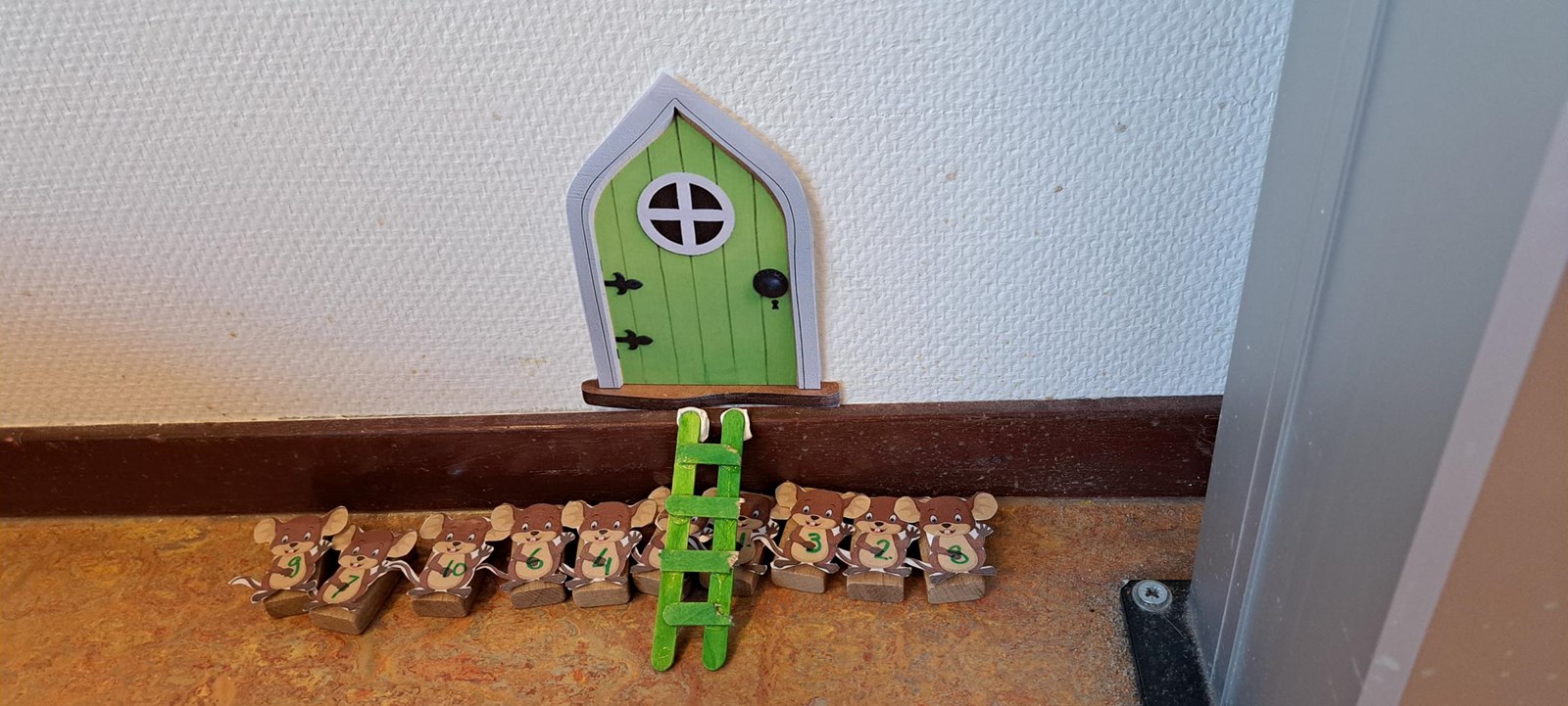 Deze week werken volop in het herfstthema. Tijdens de inloop tellen we van alles wat bij de herfst hoort. Dit om de getallen en de hoeveelheden aan elkaar te koppelen.  Op de laptop oefenen de kinderen rekenen en taal in het thema herfst. In de klas was er ineens een klein deurtje met een trappetje onder het digibord. Daar wonen Siep en Miep de muis met hun broertjes en zusjes. De kinderen bouwen van alles voor Siep en Miep.