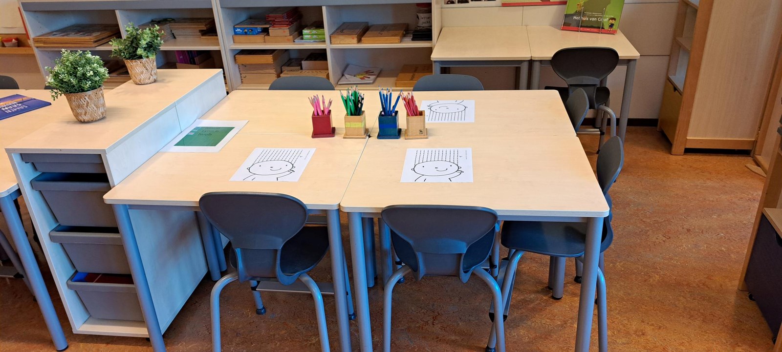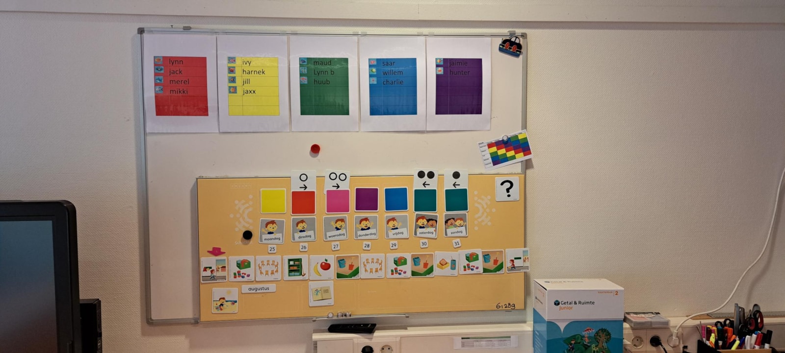 De afgelopen week heb ik de klas weer in orde gemaakt voor de start en kijk ernaar uit om jullie allemaal weer te zien. Er is weer een gezellige leeshoek, een bouwhoek en in de huishoek staat de koffie altijd klaar. We kunnen spelen met de lego, K’nex en constructiemateriaal. De kasten staan vol met puzzels, spelletjes en meer. Er is van alles voor iedereen.