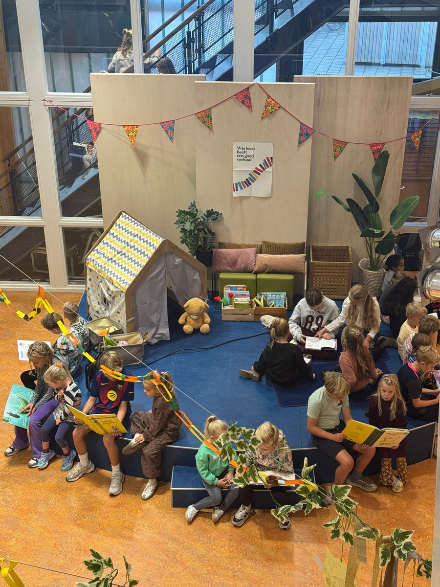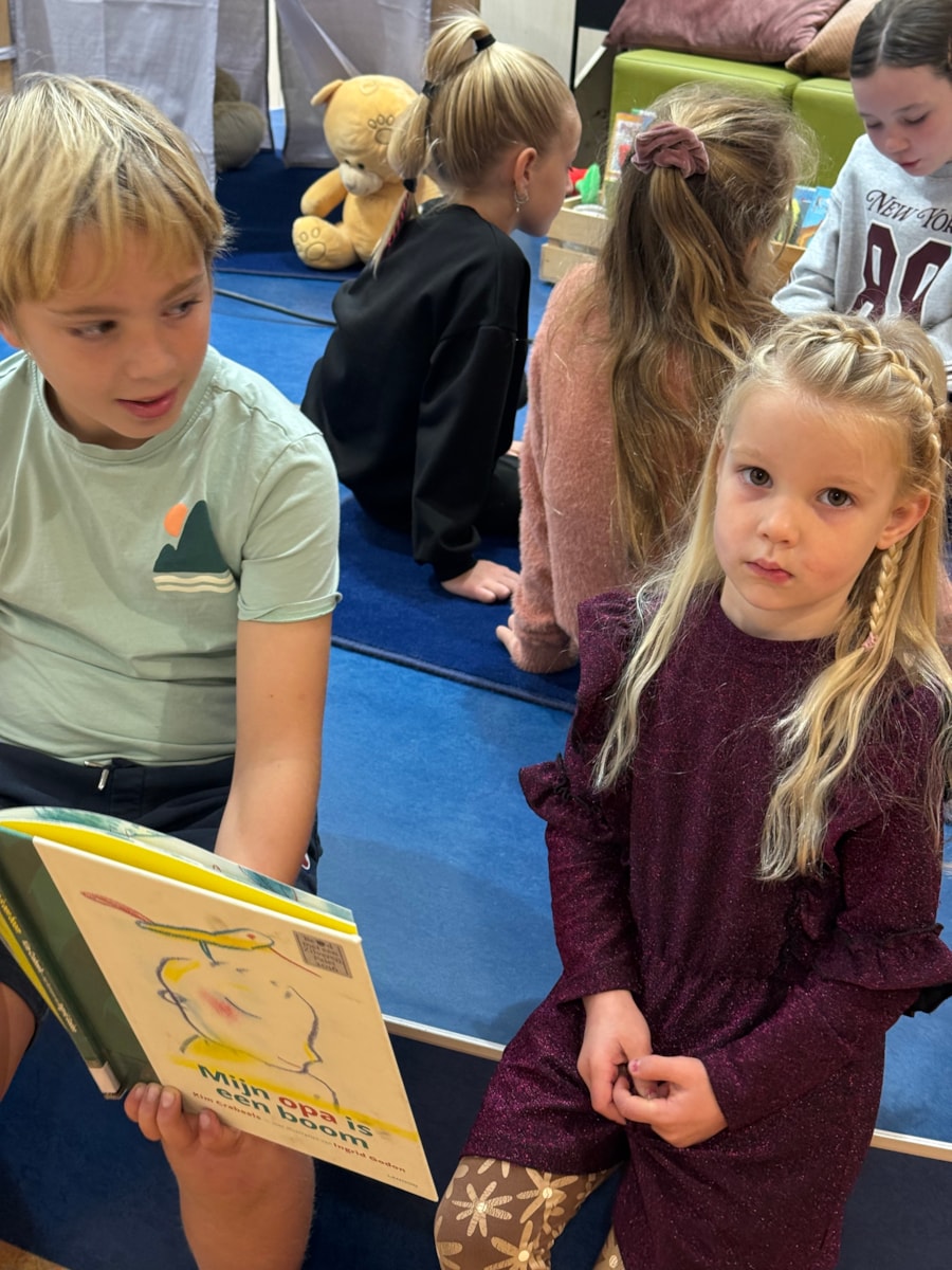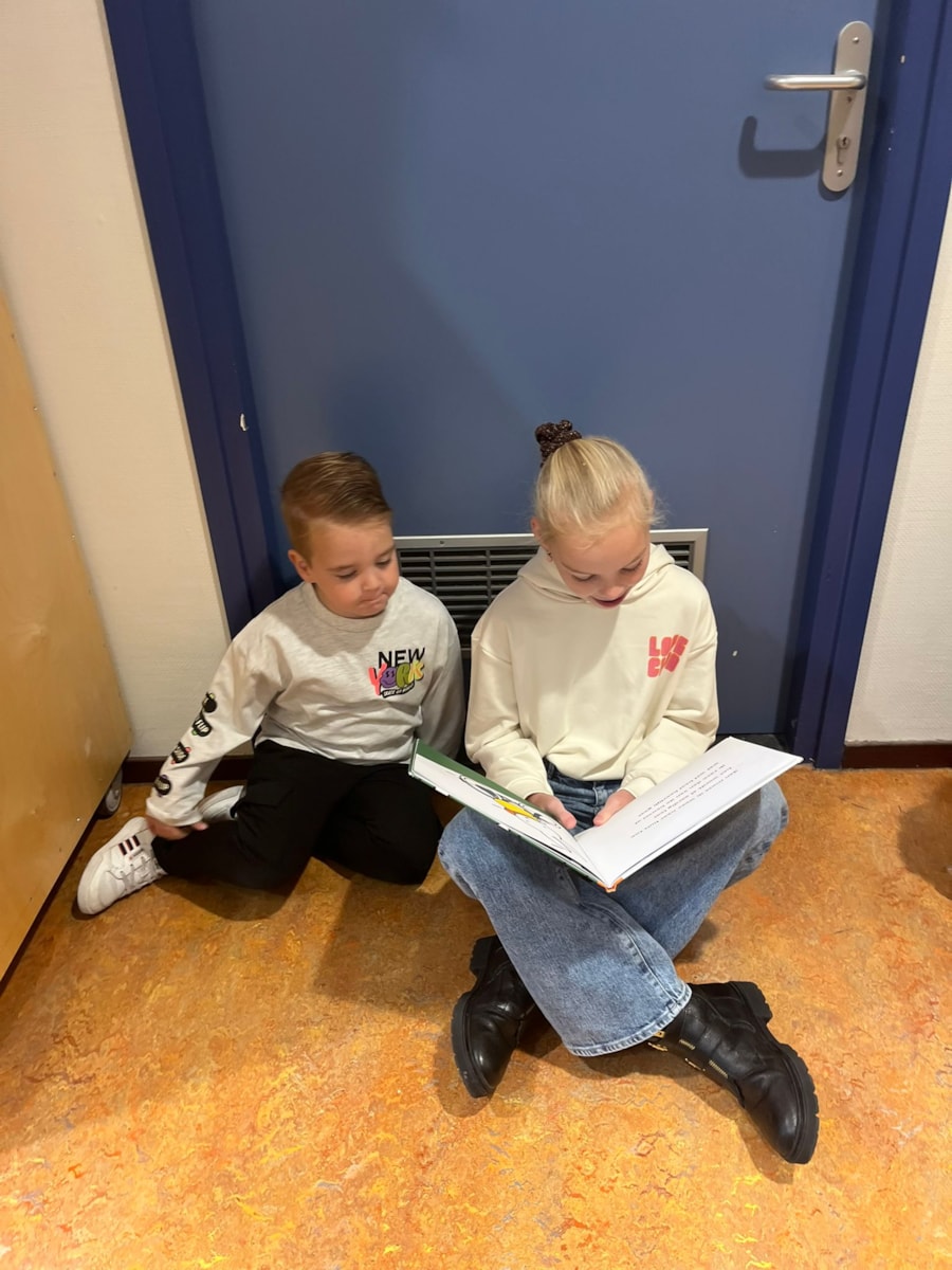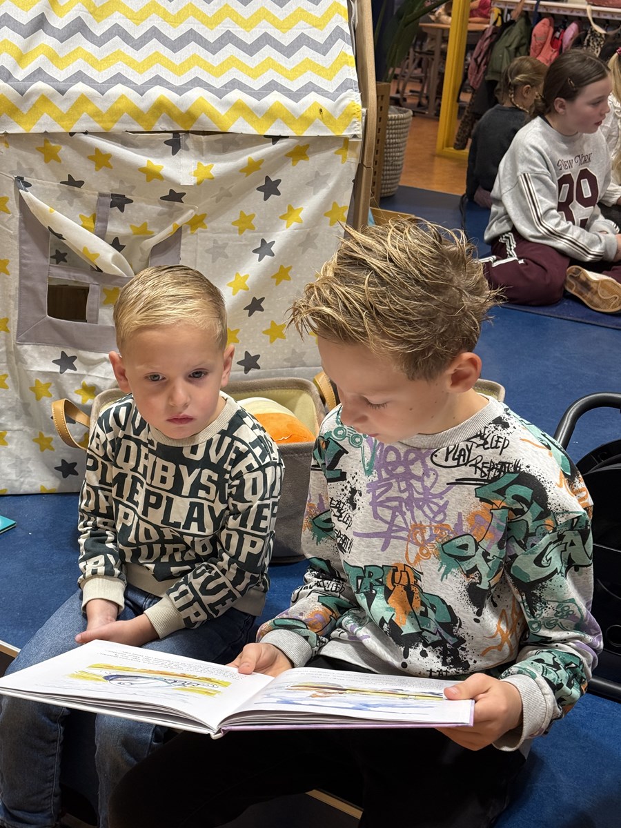 Vandaag was de feestelijke opening van de Kinderboekenweek! De kinderen kwamen binnen en dansten op het lied ‘Vol avontuur’ van Kinderen voor Kinderen. Daarna kwamen groep 5 en 6 langs om de kinderen op te halen en samen ergens in de school een gezellig plekje te zoeken om voor te lezen. Het was een superleuke start!