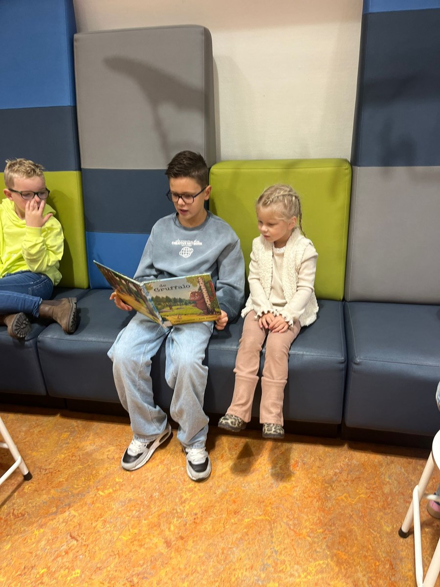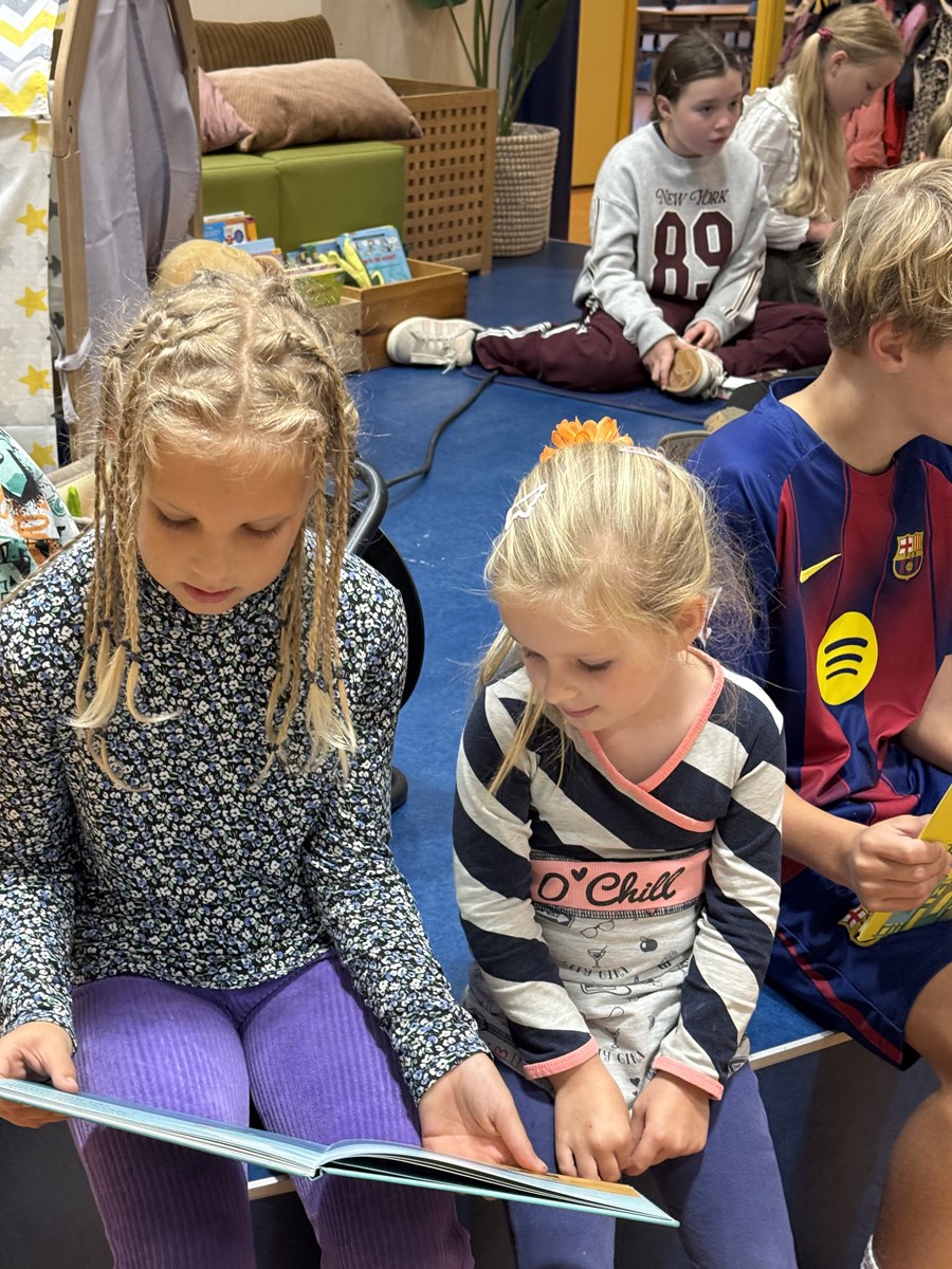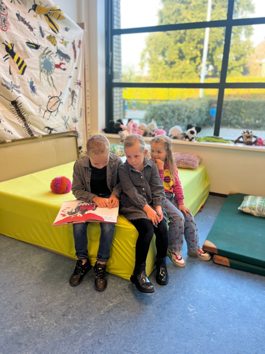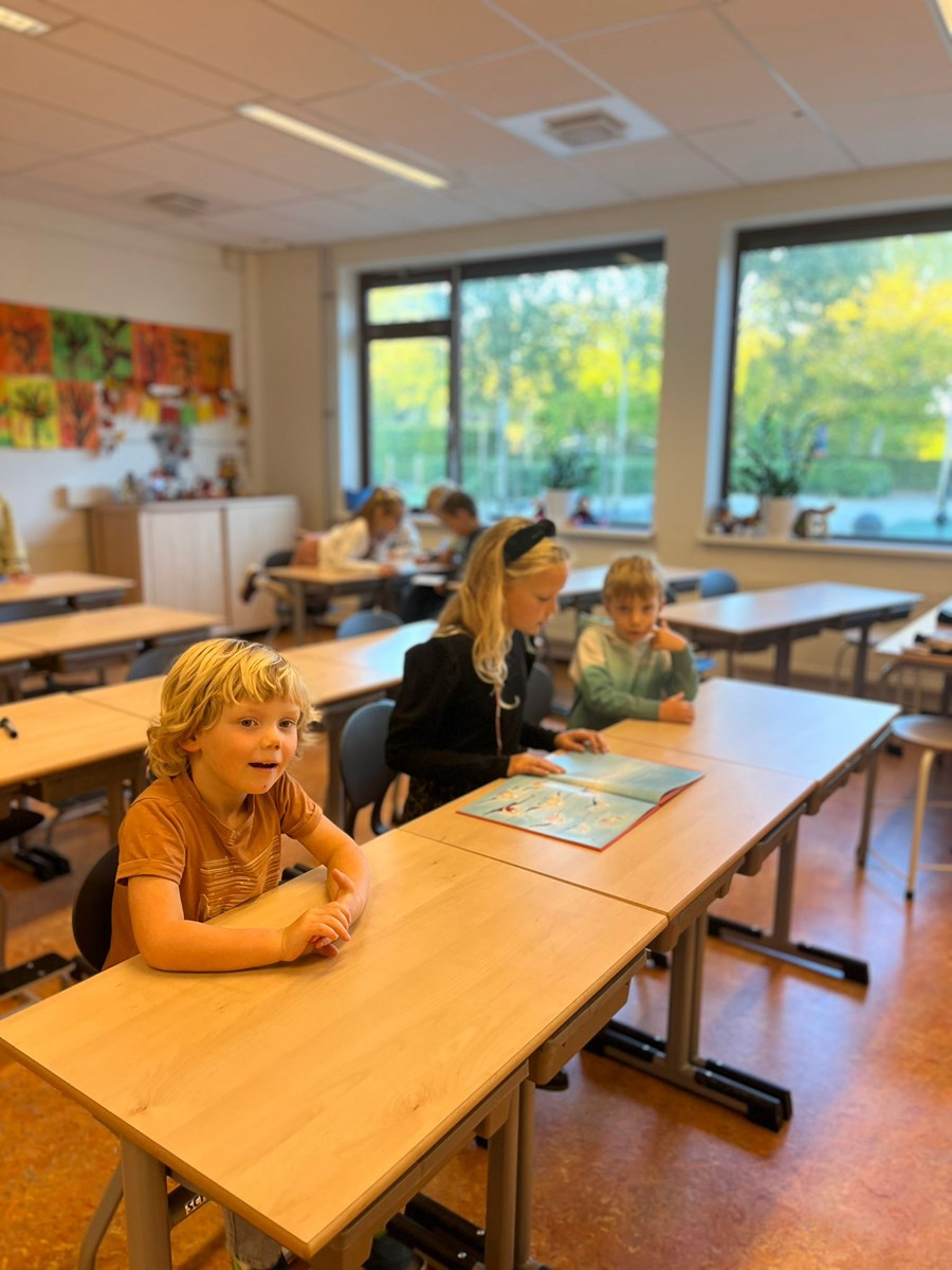 Vandaag was de feestelijke opening van de Kinderboekenweek! De kinderen kwamen binnen en dansten op het lied ‘Vol avontuur’ van Kinderen voor Kinderen. Daarna kwamen groep 5 en 6 langs om de kinderen op te halen en samen ergens in de school een gezellig plekje te zoeken om voor te lezen. Het was een superleuke start!