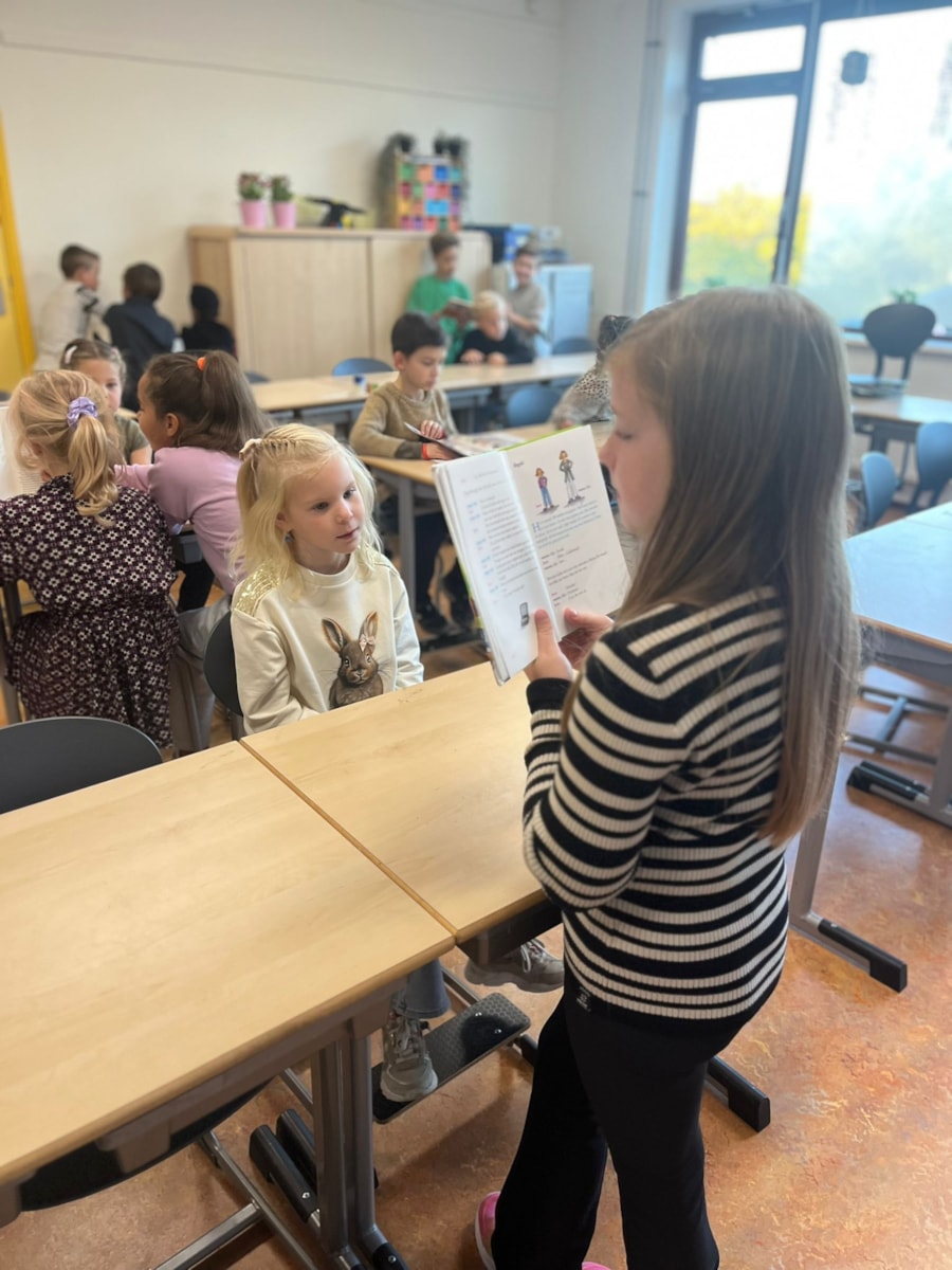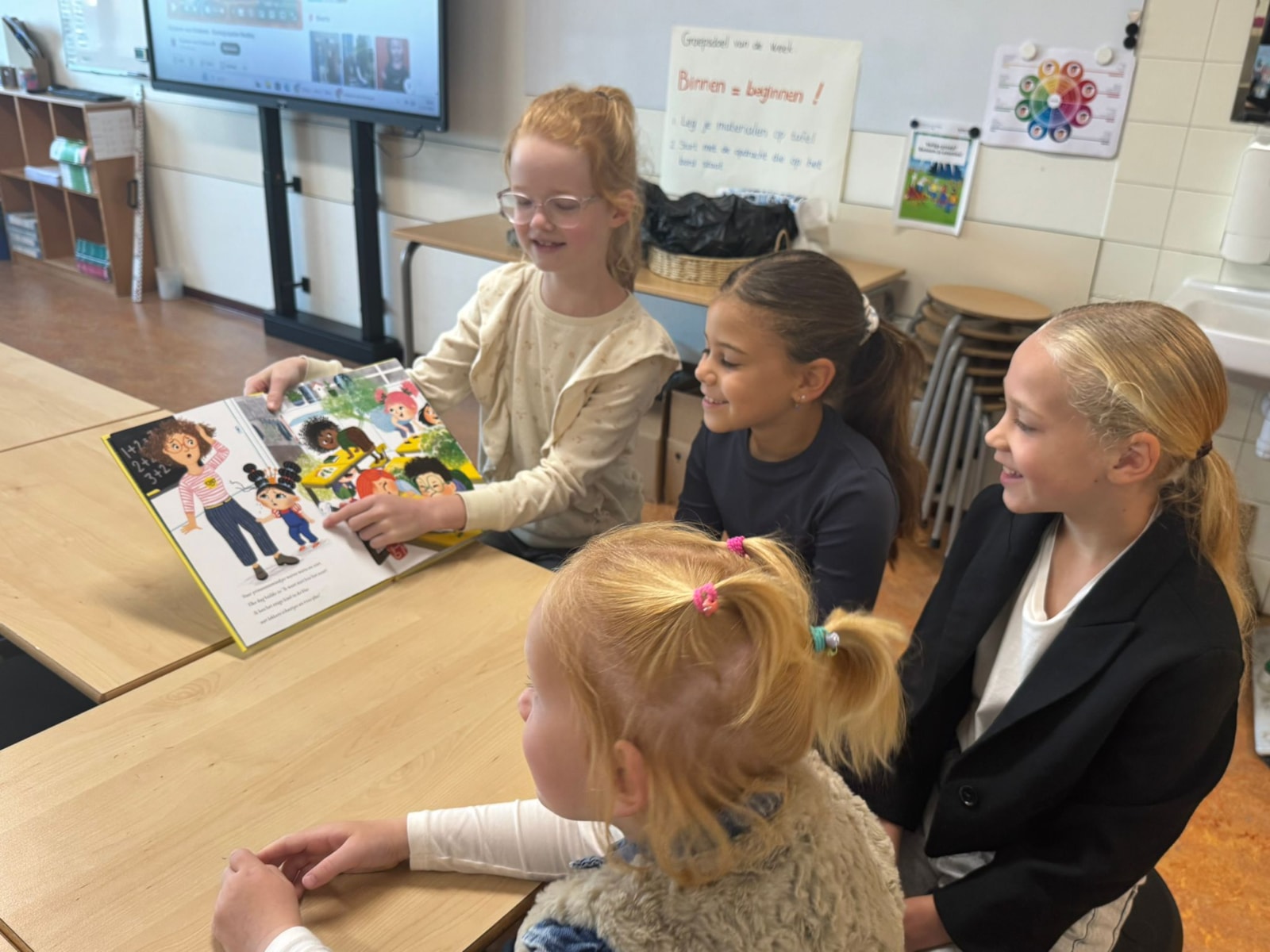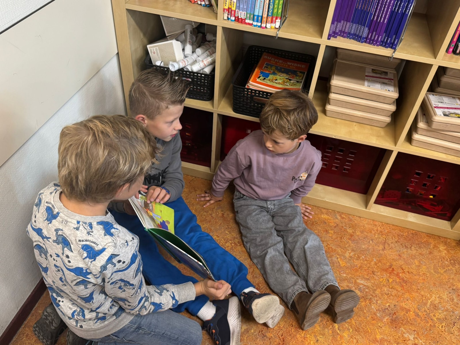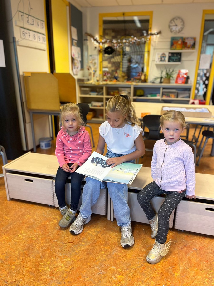 Vandaag was de feestelijke opening van de Kinderboekenweek! De kinderen kwamen binnen en dansten op het lied ‘Vol avontuur’ van Kinderen voor Kinderen. Daarna kwamen groep 5 en 6 langs om de kinderen op te halen en samen ergens in de school een gezellig plekje te zoeken om voor te lezen. Het was een superleuke start!