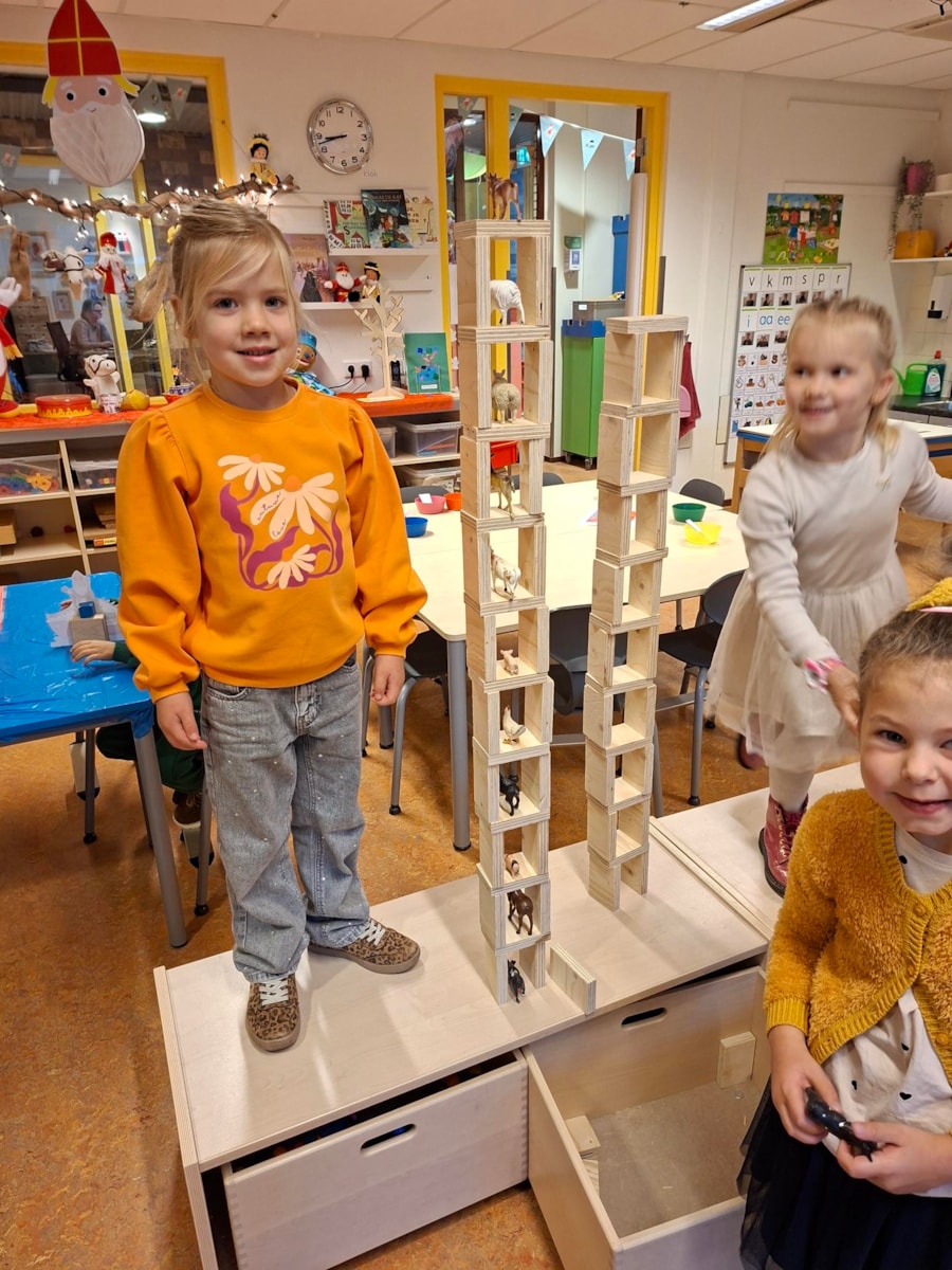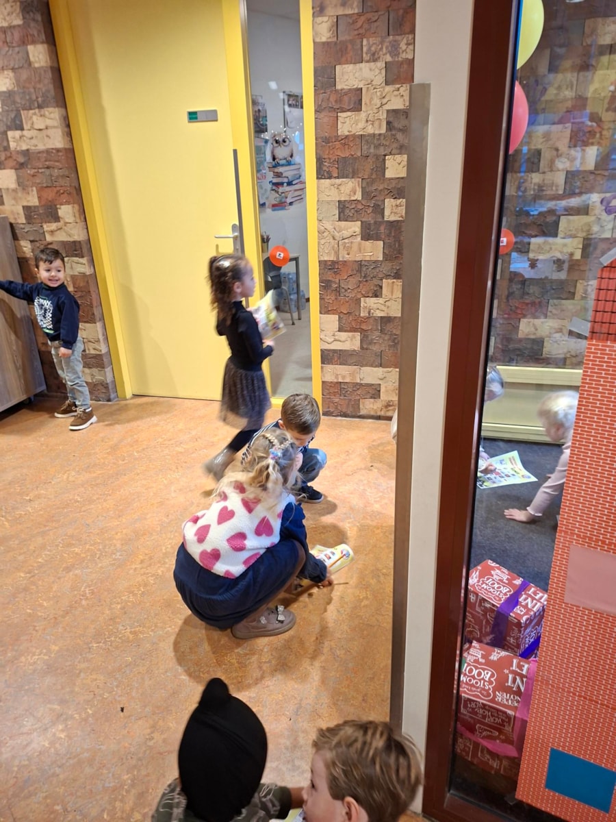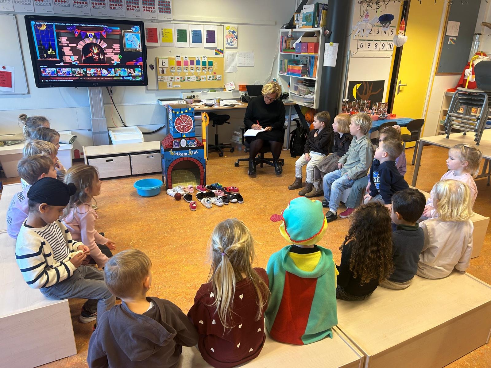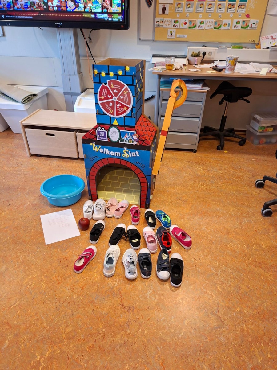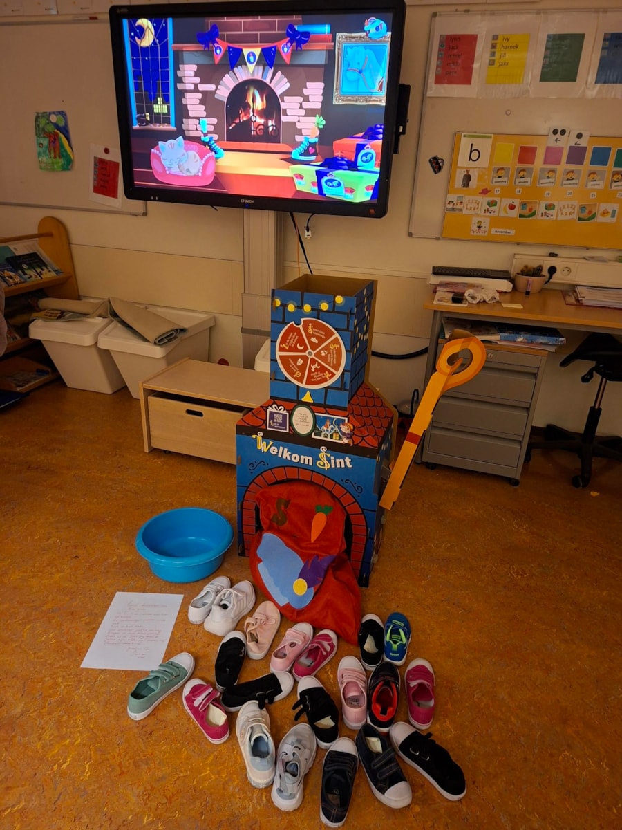 Afgelopen donderdag mochten we ook nog onze schoen zetten. Juf kreeg een telefoontje van de sint, alle kinderen waren meteen stil en hoorde dat ze hun schoen mochten zetten, iedereen begon meteen te juichen. Dat was een groot feest. We hebben allemaal liedjes gezongen, een bak water en een appel neergezet voor Ozosnel. De volgende dag was alles opgegeten en gedronken en hadden we nog een brief van sinterklaas. Ook stond er een grote zak met cadeautjes in onze klas. In de zak zaten allemaal opblaasbare ballen voor ons. We hebben de buitendeur open gedaan en heel hard dankjewel geroepen!