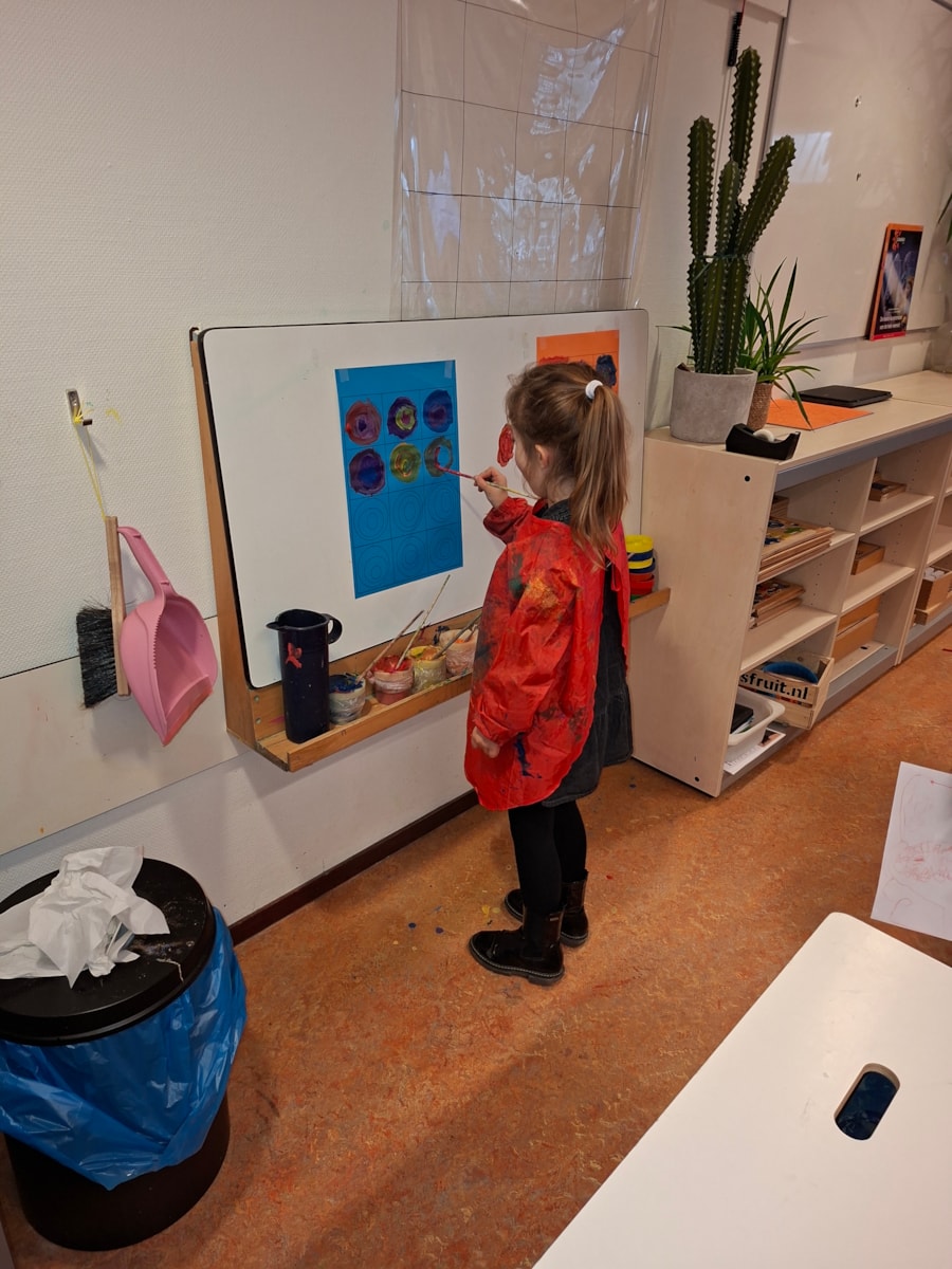Deze week een nieuwe kunstenaar in het thema Kunst. Wassily Kandynsky. Deze kunstenaar heeft een prachtig schilderij gemaakt met allemaal ronde figuren en kleurtjes. Wij hebben geprobeerd het na te maken op onze manier. We hebben geknipt en geplakt en we hebben prachtige schilderijen gemaakt.