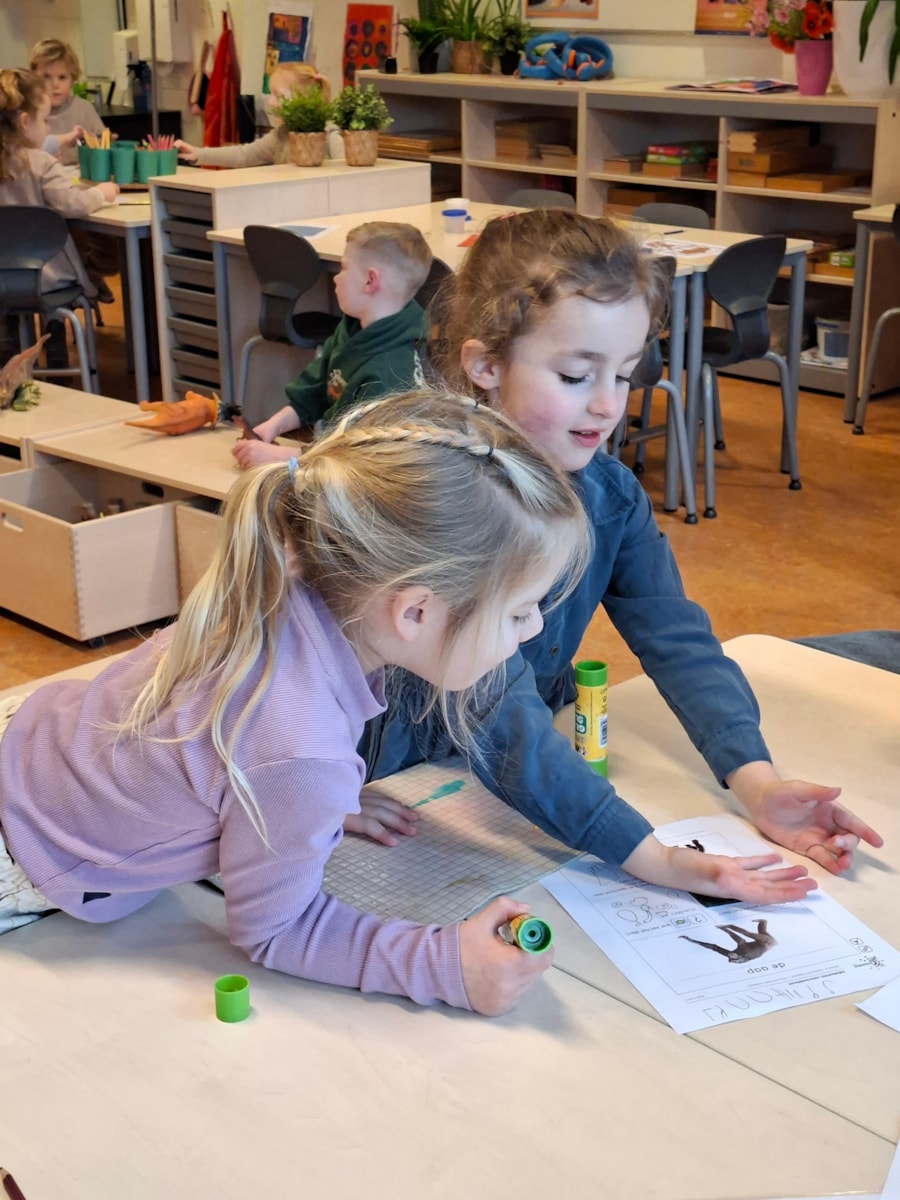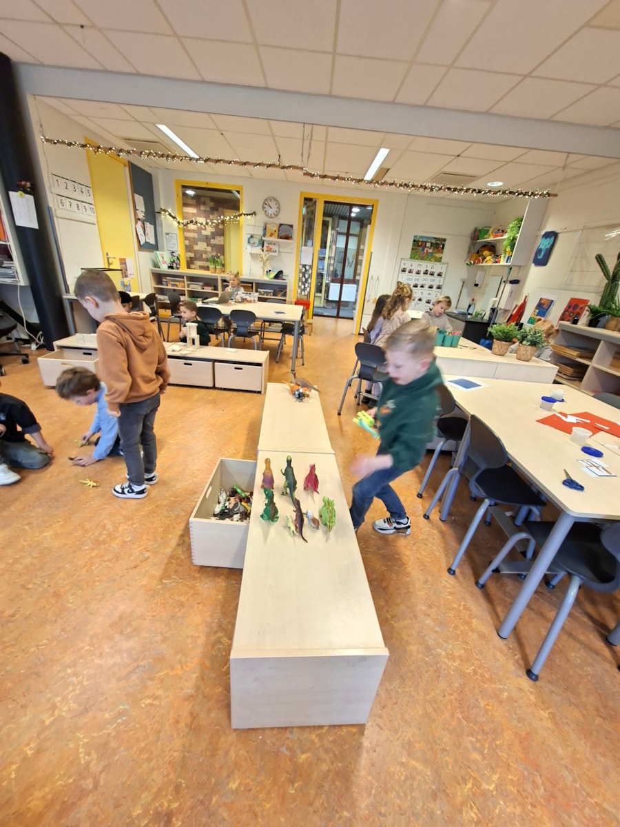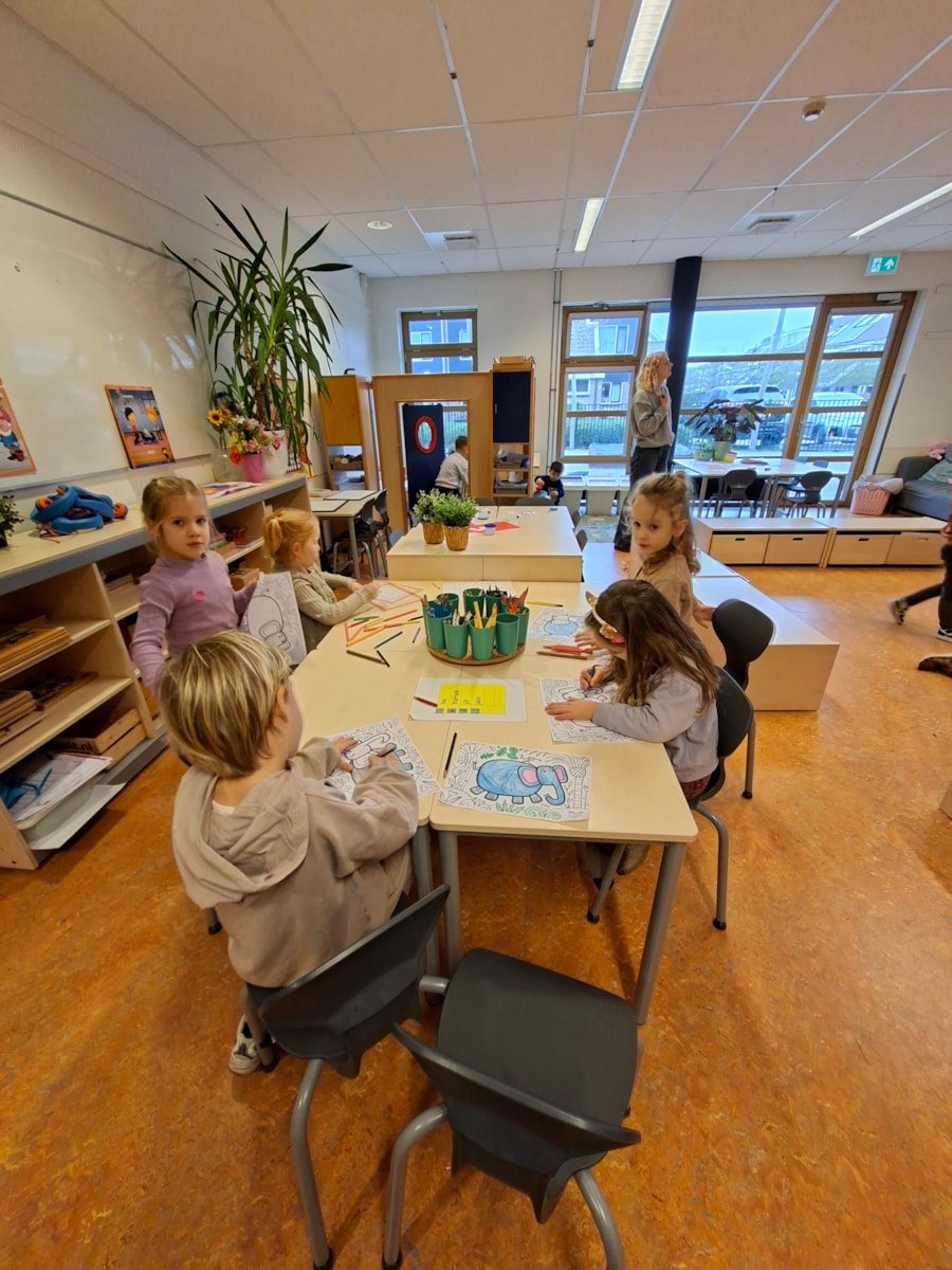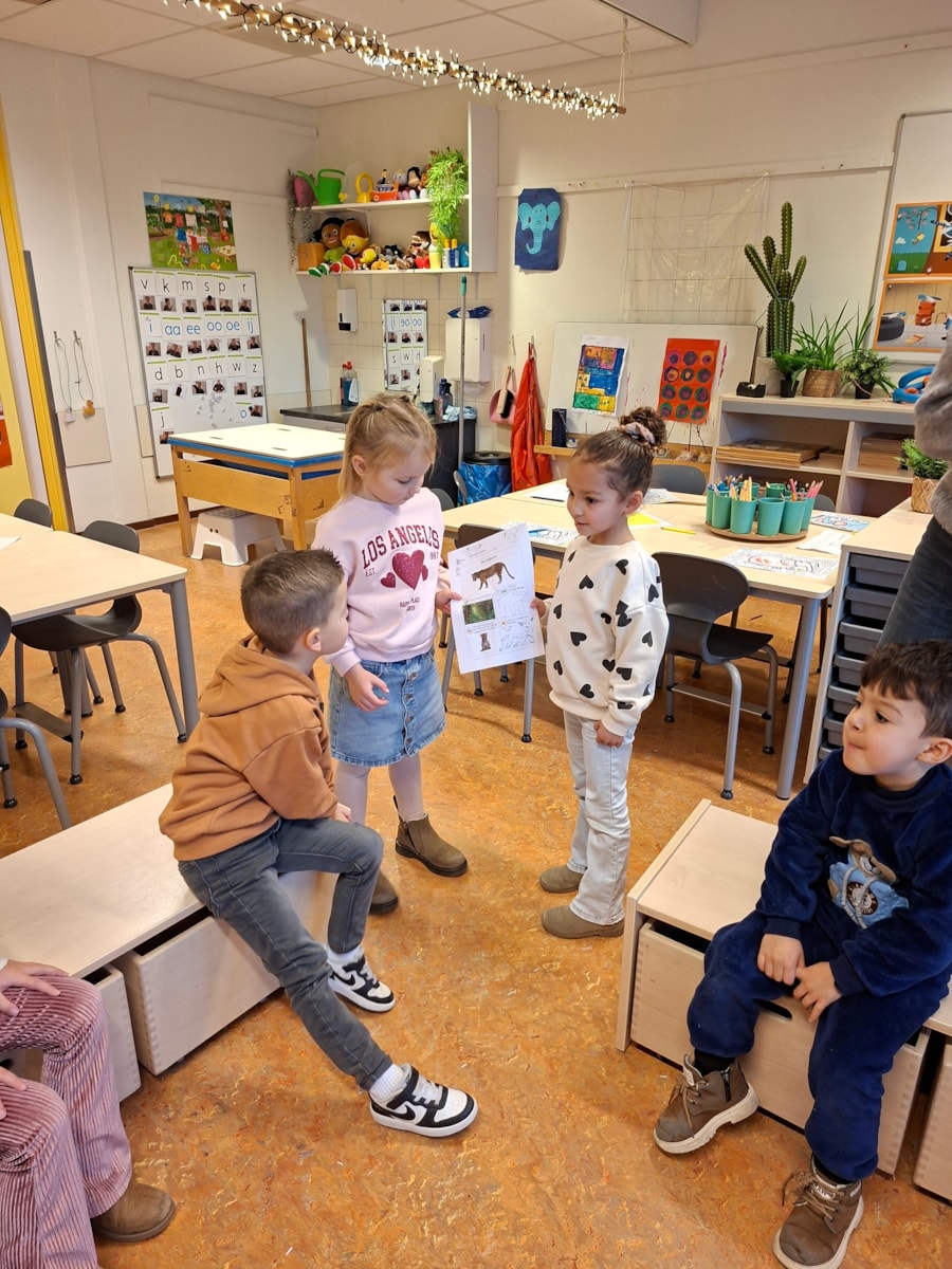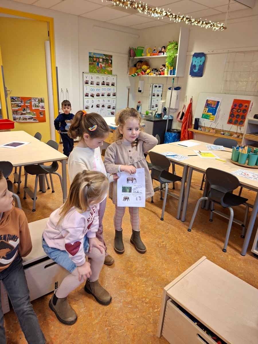 Deze week waren de wilde dieren of de dieren uit de dierentuin aan de orde. Altijd leuk, de kinderen vinden het heerlijk om de dieren het ook na te doen. In een korte tijd hadden we een klas vol leeuwen, apen of krokodillen.