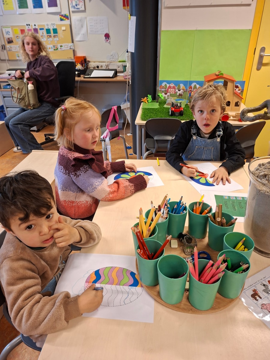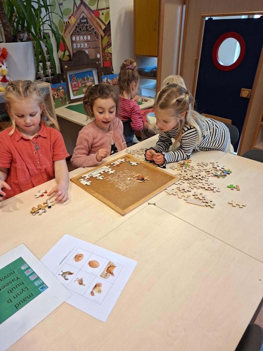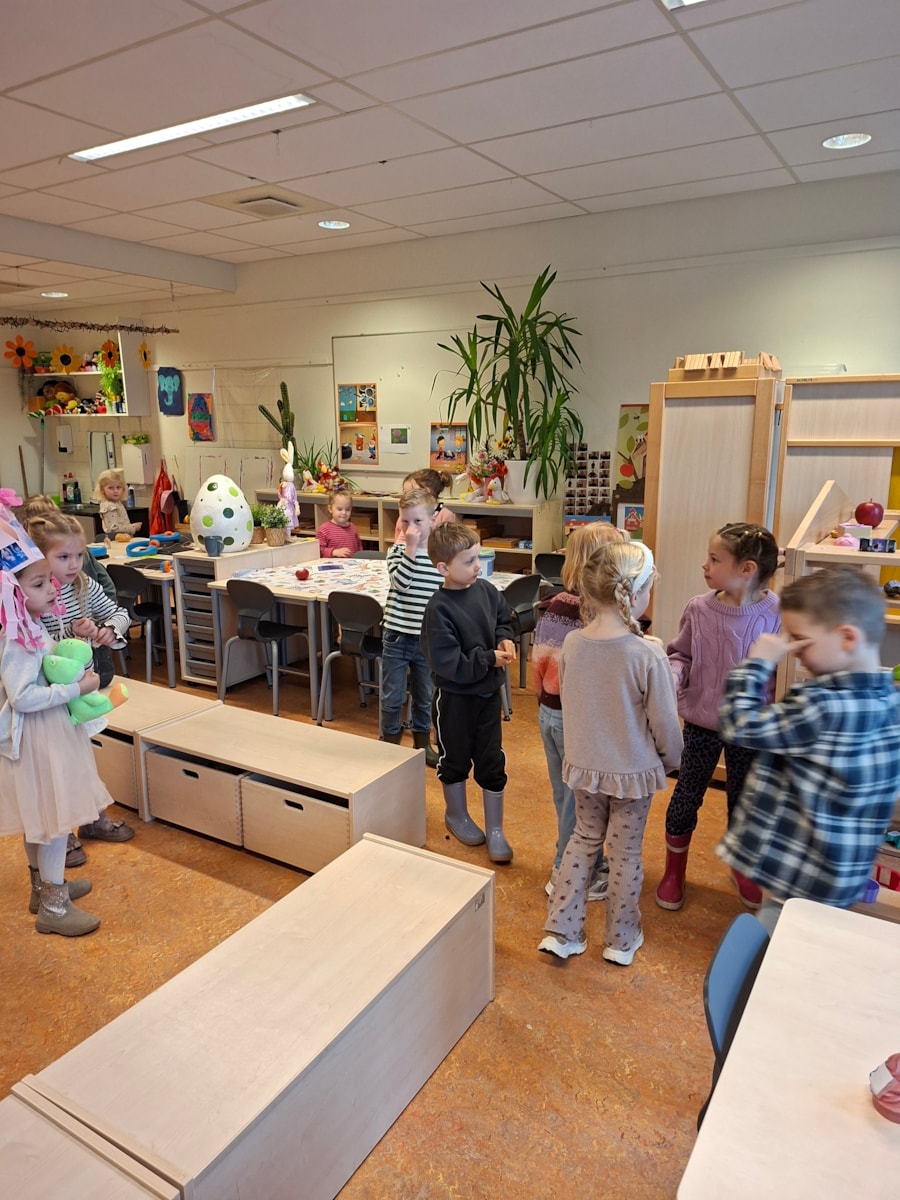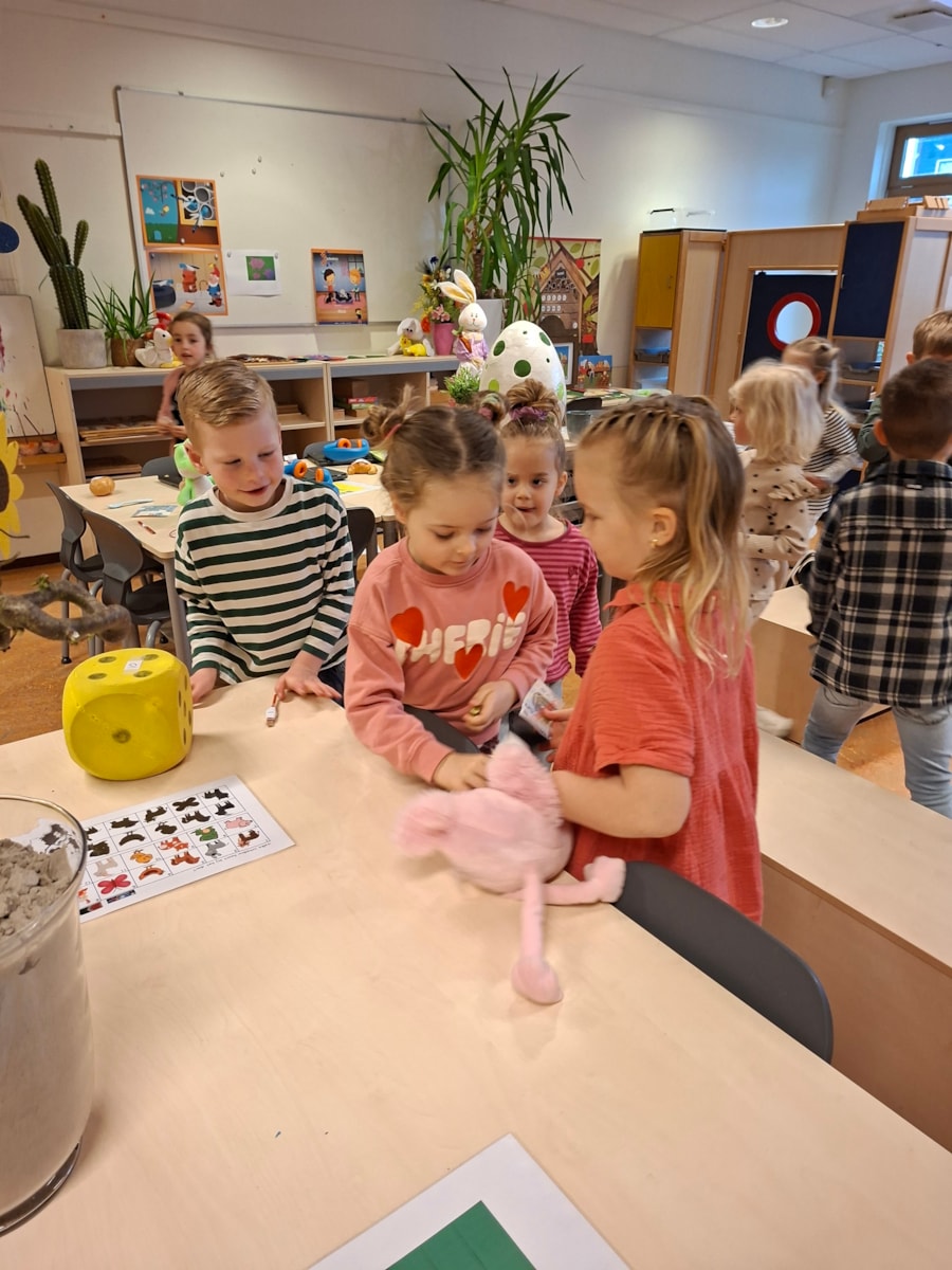 Deze week was het de afronding van het thema dieren. We hebben veel geleerd en besproken. Deze week was een overgang naar het thema Pasen en lente. We hebben al liedjes geleerd zoals: “uit een kip komt een ei” en “lente op de boerderij”.