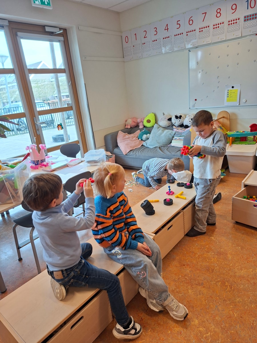 In de gymzaal hebben we een beweegverhaal gedaan. Er werd een verhaal verteld en daarin kwamen allerlei getallen voor. Zodra de kinderen een getal hoorde moesten ze op zoek naar het getal.