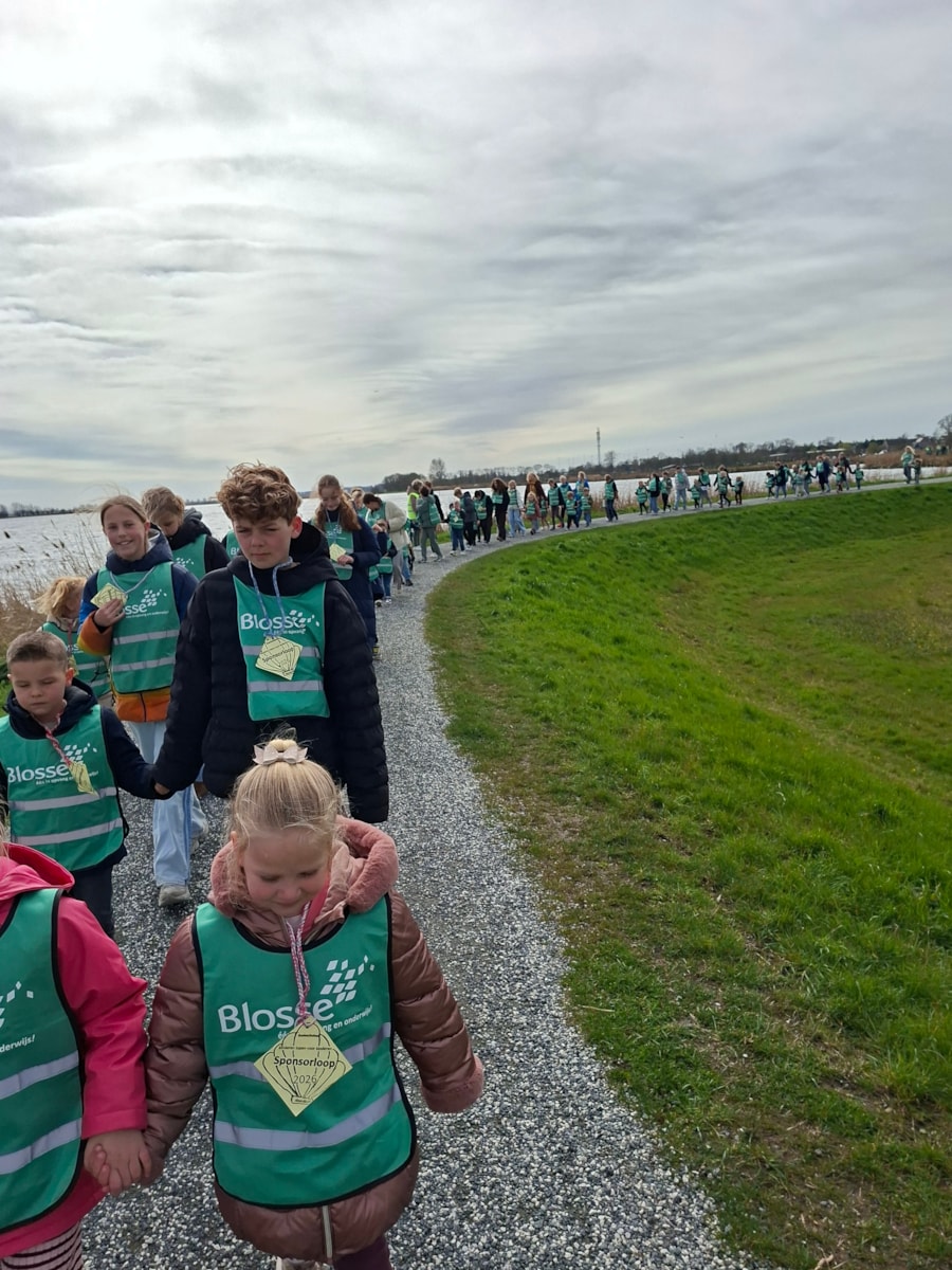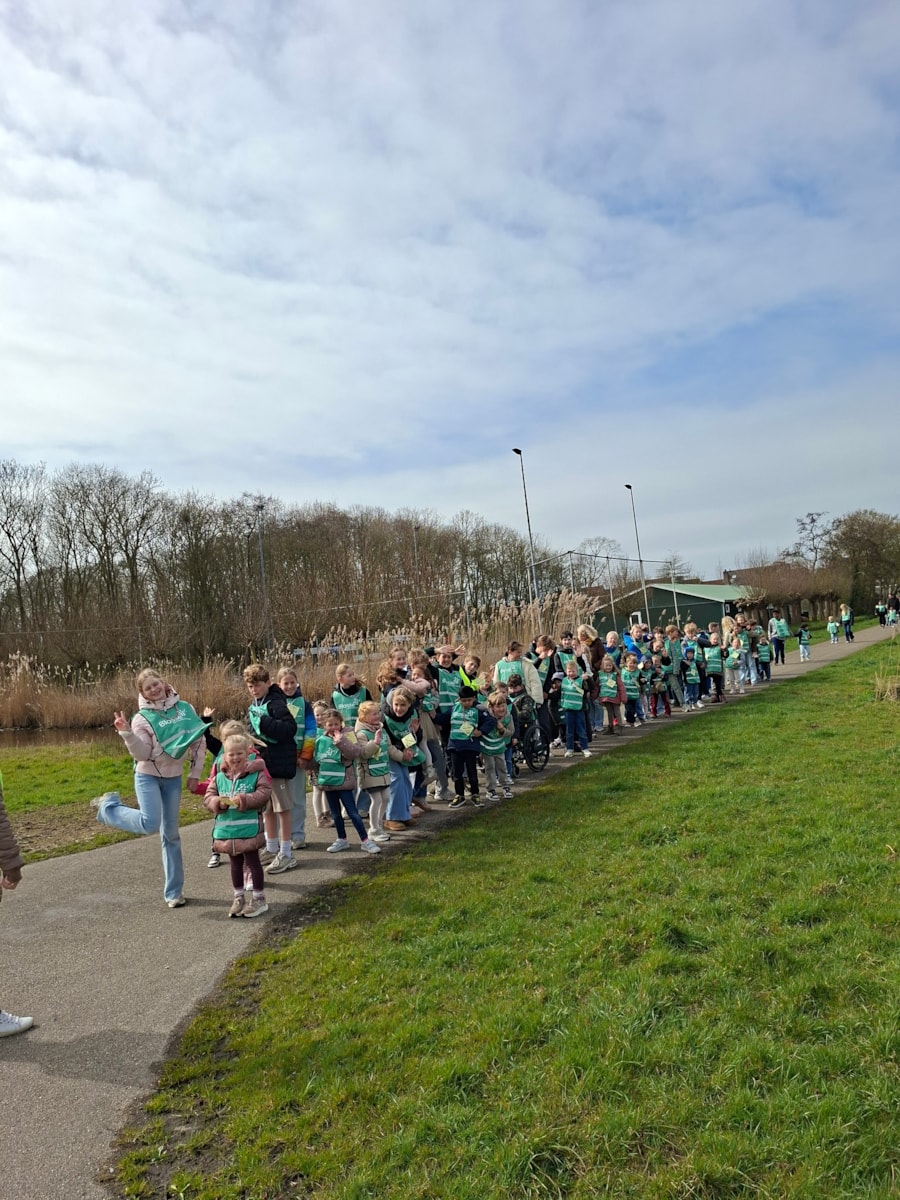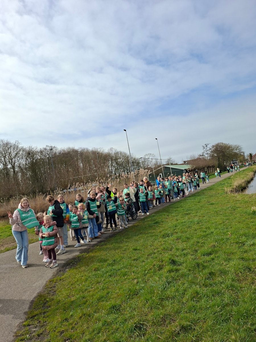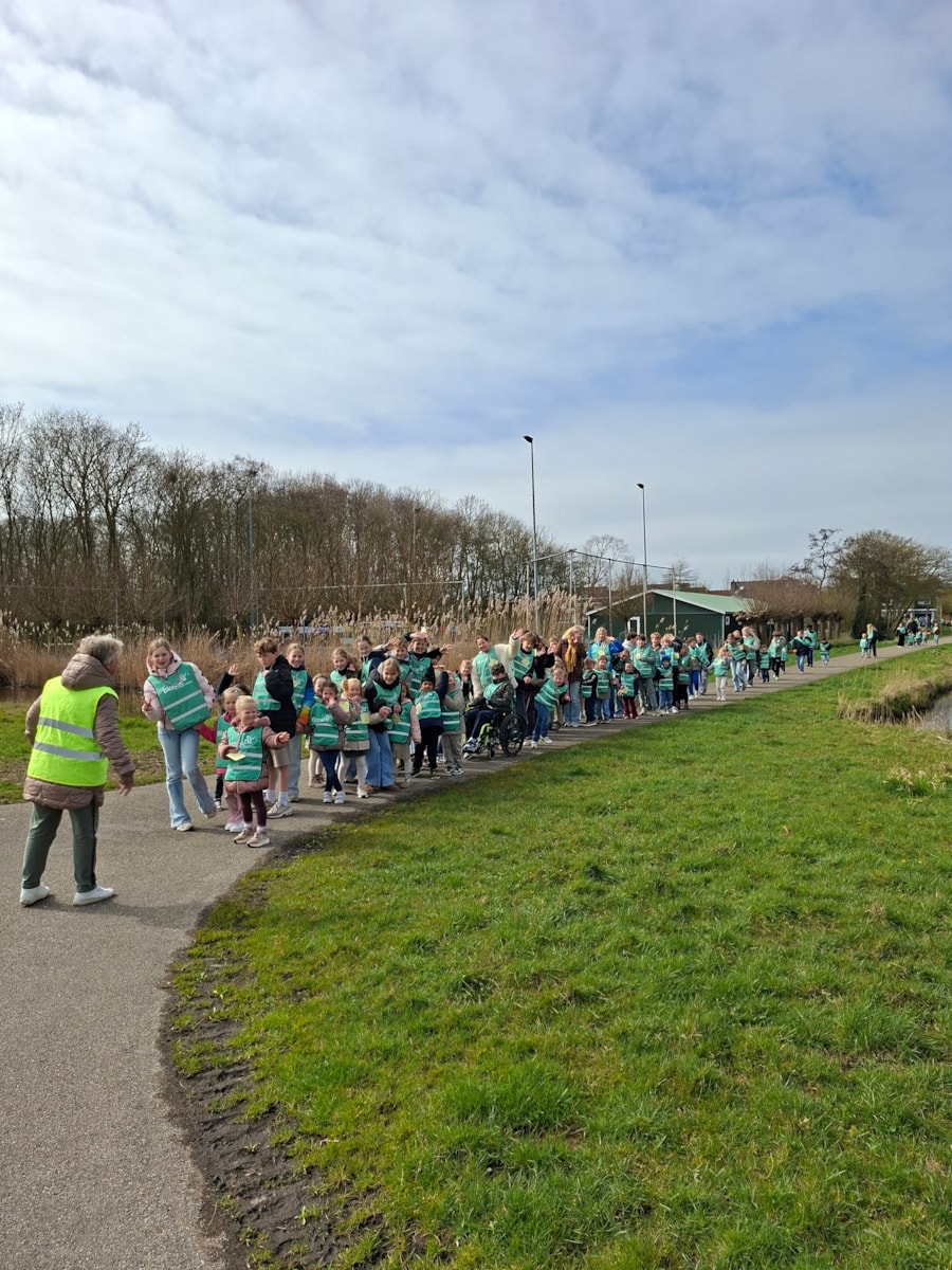 Vol goede moed gingen wij op pad. Rond 13.00 uur vertrokken we naar de kerk waar het startsein werd gegeven. Er waren veel ouders, opa’s, oma;s ooms en tantes die ons kwamen aanmoedigen. De oudere kinderen liepen met de jongere kinderen. Onderweg ontstonden gezellige gesprekken over van alles en nog wat. Onderweg was er wat lekkers voor alle kinderen, dit had de ouderraad geregeld. Aan het einde van de wandeling hebben de kinderen limonade gekregen in de kerk. We hopen dat er veel geld is gehaald voor Mama Jane. U kunt het geld inleveren op zaterdag tussen 11.00 uur en 13.30 uur in de kerk.