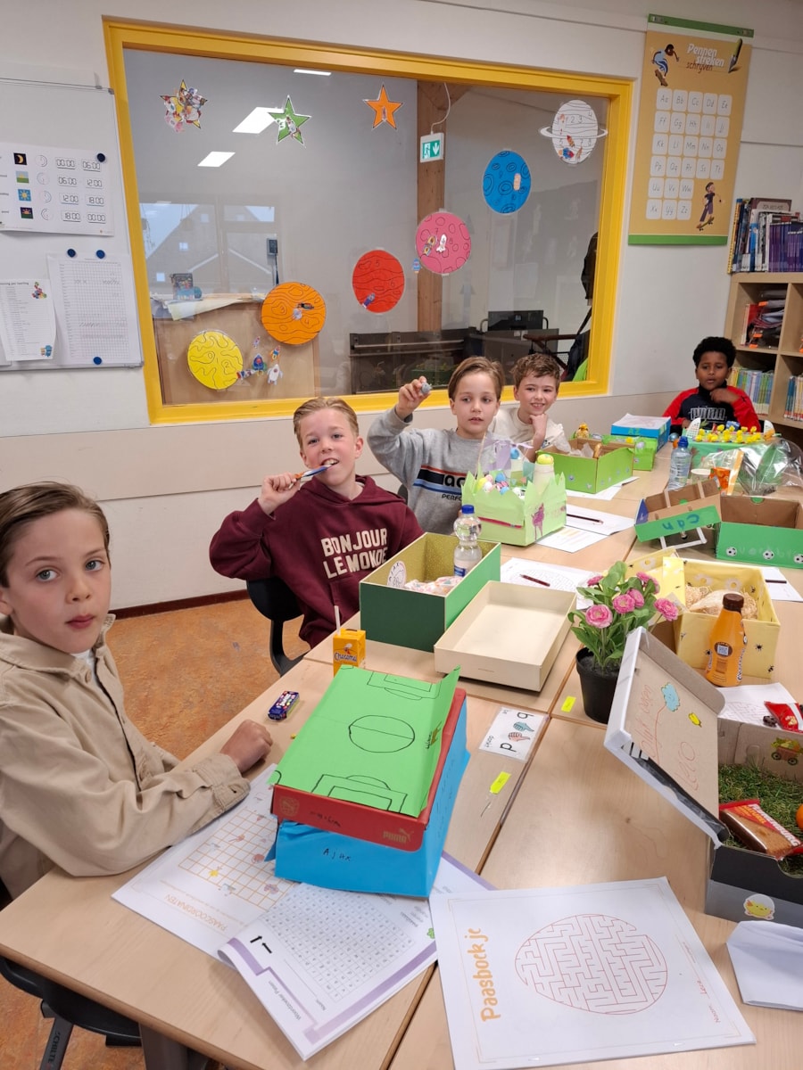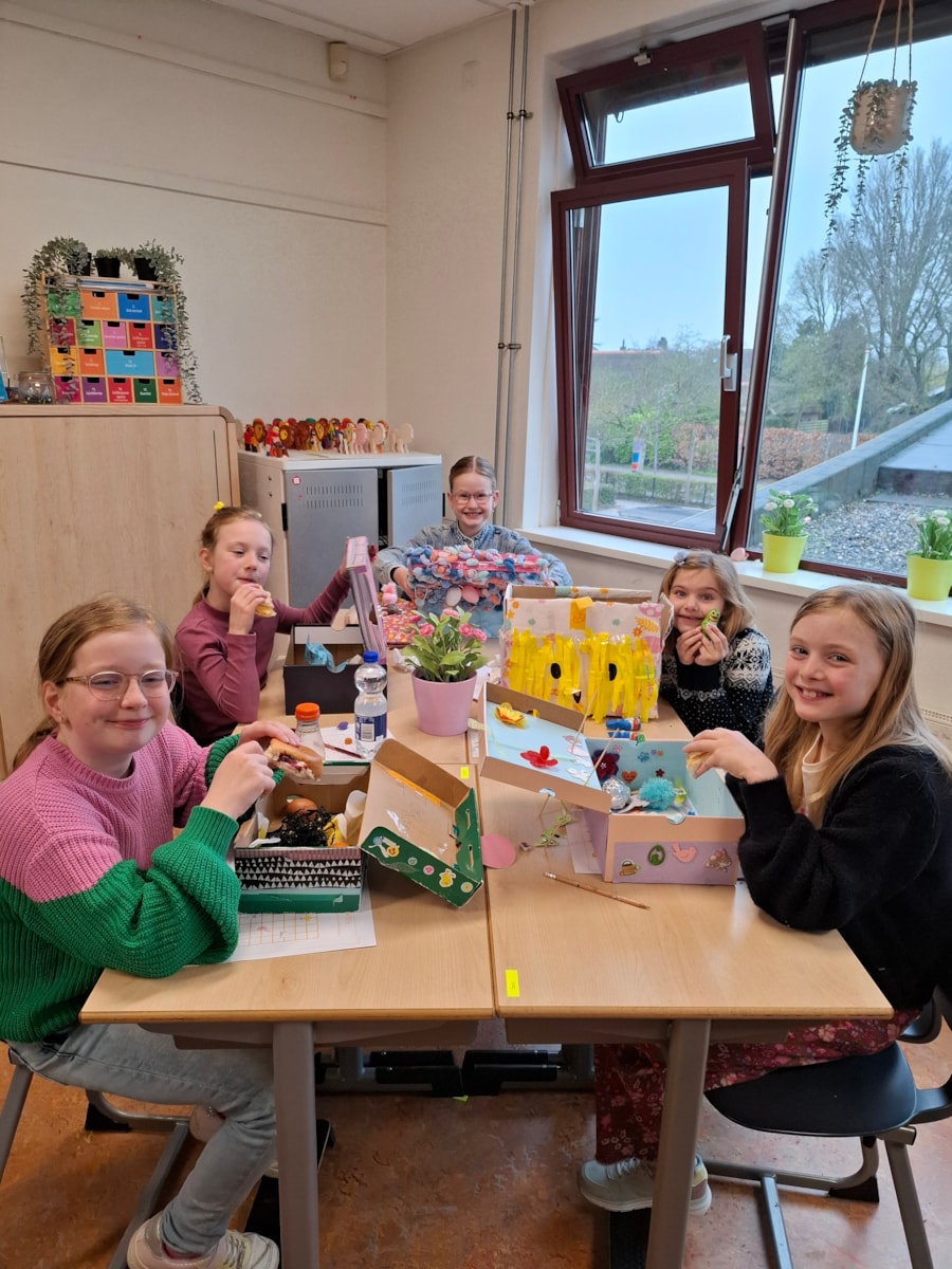 De kinderen hebben enorm hun best gedaan met het versieren van hun Paasdozen. De creativiteit spatte ervan af: de dozen zagen er stuk voor stuk fantastisch uit. Met het heerlijke ontbijt erin werd het een feest om samen van te genieten.