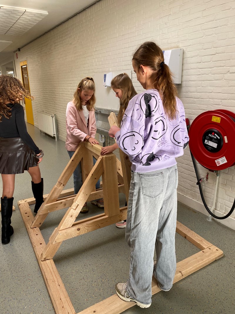 Het was een topochtend. Tegelmuur zetten. Dak in elkaar zetten. Dakpannen plaatsen op een dak. Bakje getimmerd. Superleuk.